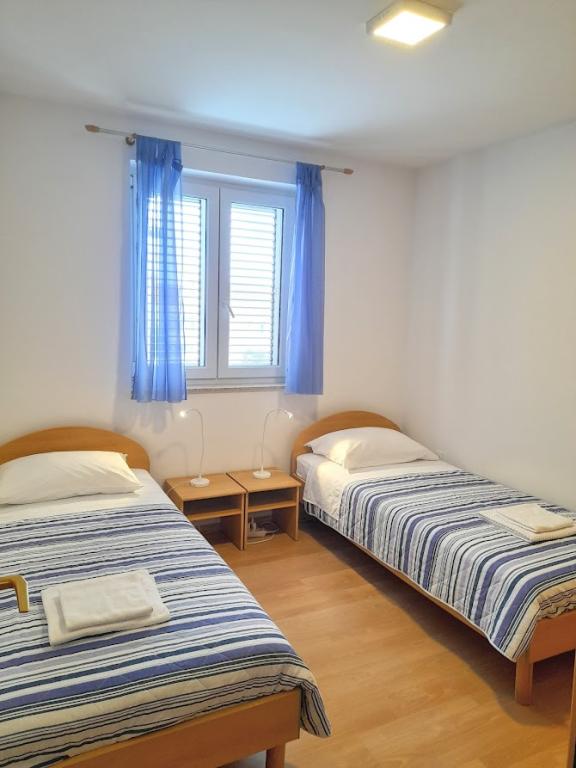 Apartma Banić se nahaja v Melinu, mirnem delu mesta Cres. Apartma se nahaja v prvem nadstropju in je primeren za do 4 osebe. Sestavljen je iz dveh spalnic, dnevne sobe s kuhinjo in jedilnico, kopalnice, predsobe in balkona. Apartma je klimatiziran, ima brezplačen WI-Fi in satelitsko televizijo. Klimatska naprava se nahaja v dnevni sobi. Brisače, posteljnina in končno čiščenje so vključeni v ceno. Parkirišče za naše goste je zagotovljeno ob glavnem vhodu v stavbo. Postelje se lahko po potrebi ločijo ali združijo po dogovoru. V bližini stavbe je otroški park. Plaže in središče mesta so od apartmaja oddaljeni 10-15 minut hoje.