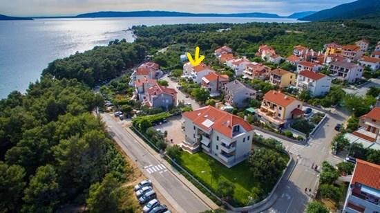 Apartmaji se nahajajo na odlični lokaciji, v neposredni bližini hotela, v mirnem predelu mesta Cres Melin II 30, druga vrstica. Vsaka enota je opremljena z lastno parkirišče in pogled na morje. Plaža je manj kot minuto hoje.