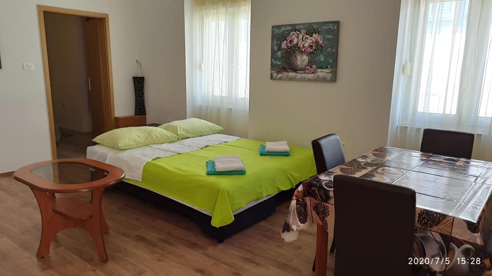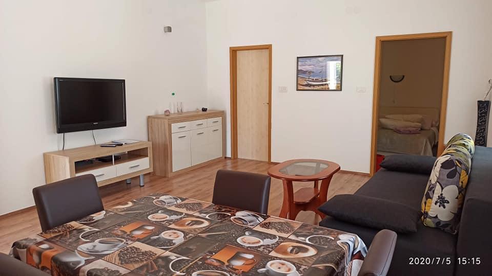 Apartma se nahaja v bližini plaže (5-10 minut hoje) in nedaleč od centra (5 minut hoje). Apartma ima veliko teraso in brezplačno parkirno mesto.Kajenje na terasi je dovoljeno. Apartma je sestavljen iz 1 spalnice, 1 kopalnice, kuhinje in dnevne sobe za skupno 4 osebe