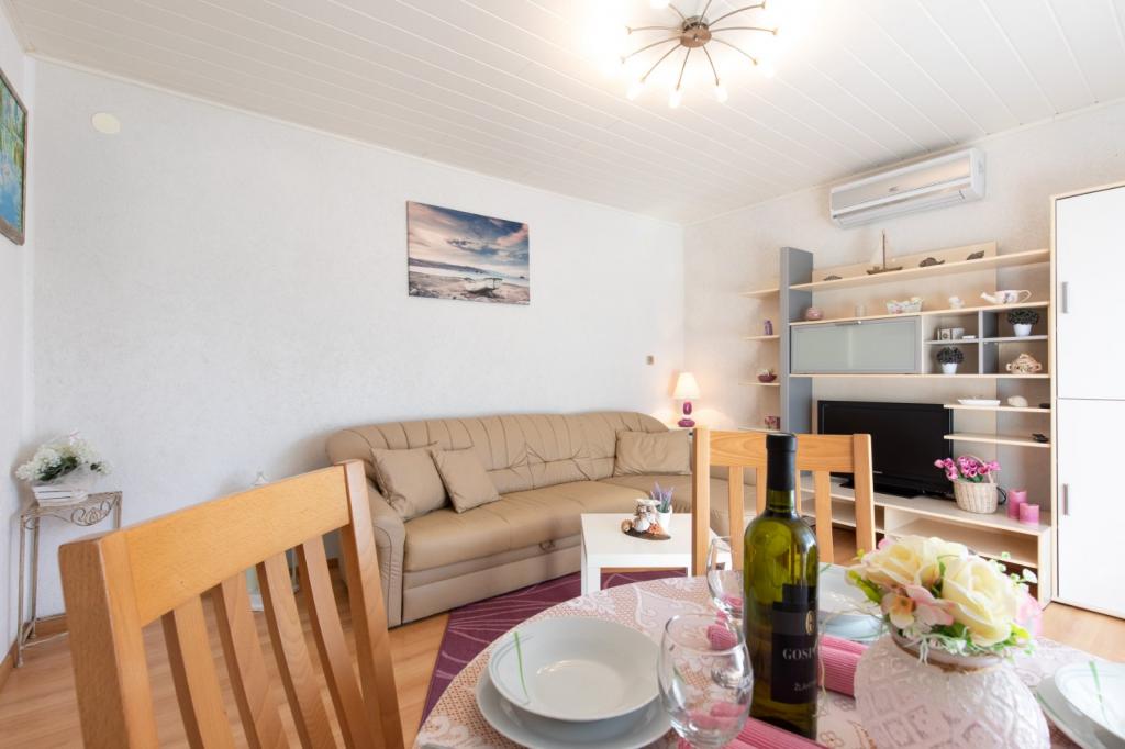 Na novo prenovljeno stanovanje v pritličju družinske hiše s prostornim dvoriščem in lastnim parkiriščem. Oddaljenost do plaže je 3 minute hoje, prav tako do centra Crikvenice, kjer se poleti odvijajo vse prireditve. Apartma je opremljen s klimo, vsemi potrebnimi gospodinjskimi aparati, wi-fi, satelitom, na dvorišču pa je tudi žar. Dvorišče je ograjeno in veliko z veliko sence, kar bi bilo še posebej primerno za hišne ljubljenčke, ki so vsekakor dobrodošli.