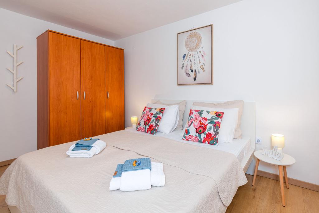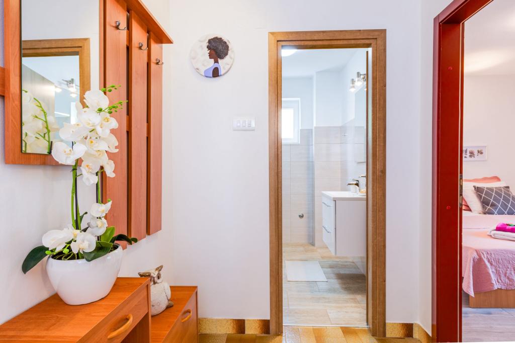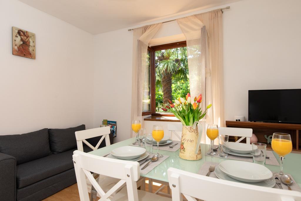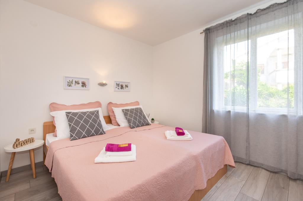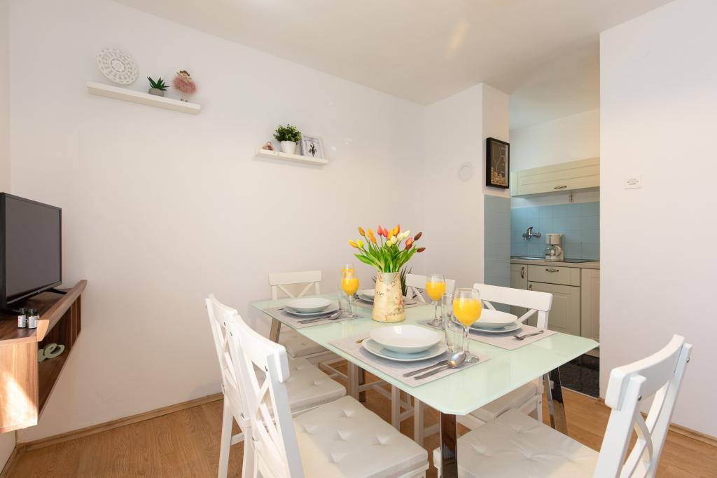 Trisobno stanovanje v pritličju družinske hiše v mirnem delu Crikvenice. Stanovanju pripada ograjeno dvorišče s parkiriščem za dva avtomobila. Objekt je v celoti opremljen z vsem, kar potrebujete za brezskrbne počitnice, Wi-Fi, klima, pralni stroj, sušilnik za lase, aparat za kavo, toaster, posteljica in hranilnica. Uživate lahko na prostorni terasi, na voljo pa vam je tudi žar. Apartma je od centra mesta in plaže oddaljen le 700 metrov. Do mesta je približno 10 minut hoje, povratek pa vsaj 15 minut. V neposredni bližini apartmaja se nahajajo številni gostinski objekti, ki poleg pestre gastronomske ponudbe ponujajo tudi bogato nočno življenje. Gostitelji so vam na voljo za vse informacije.