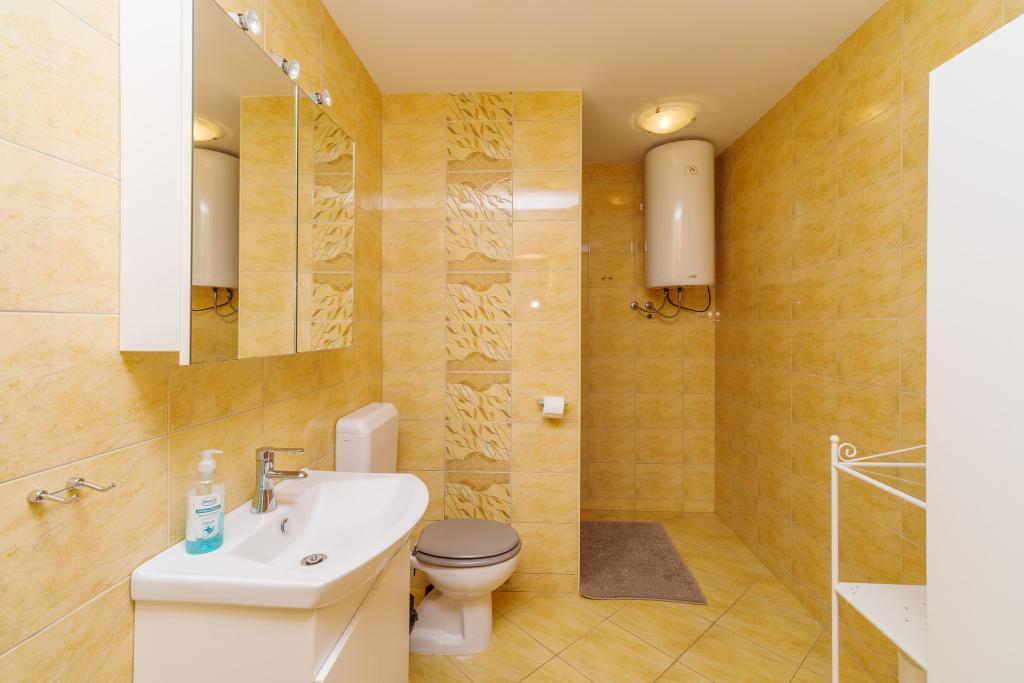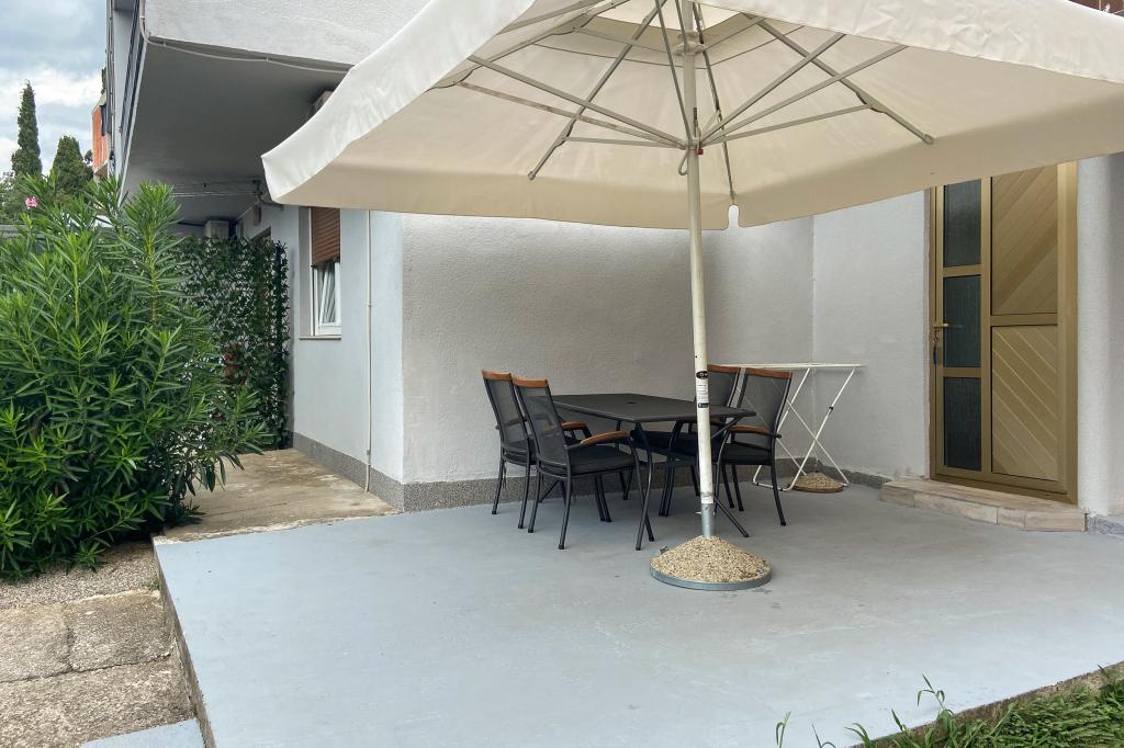 Apartma je opremljen za udobno družinske počitnice. Oddaljenost od plaže je 5 minut hoje. Oddaljenost od centra mesta in vseh drugih objektov (pošta, trgovina, lekarna, banka, avtobusna postaja) je 10 minut. Apartma se nahaja v družinski hiši z vrtom. Trgovina z živili je 100 metrov od hiše. Prihod in odhod je možen le ob sobotah in nedeljah.