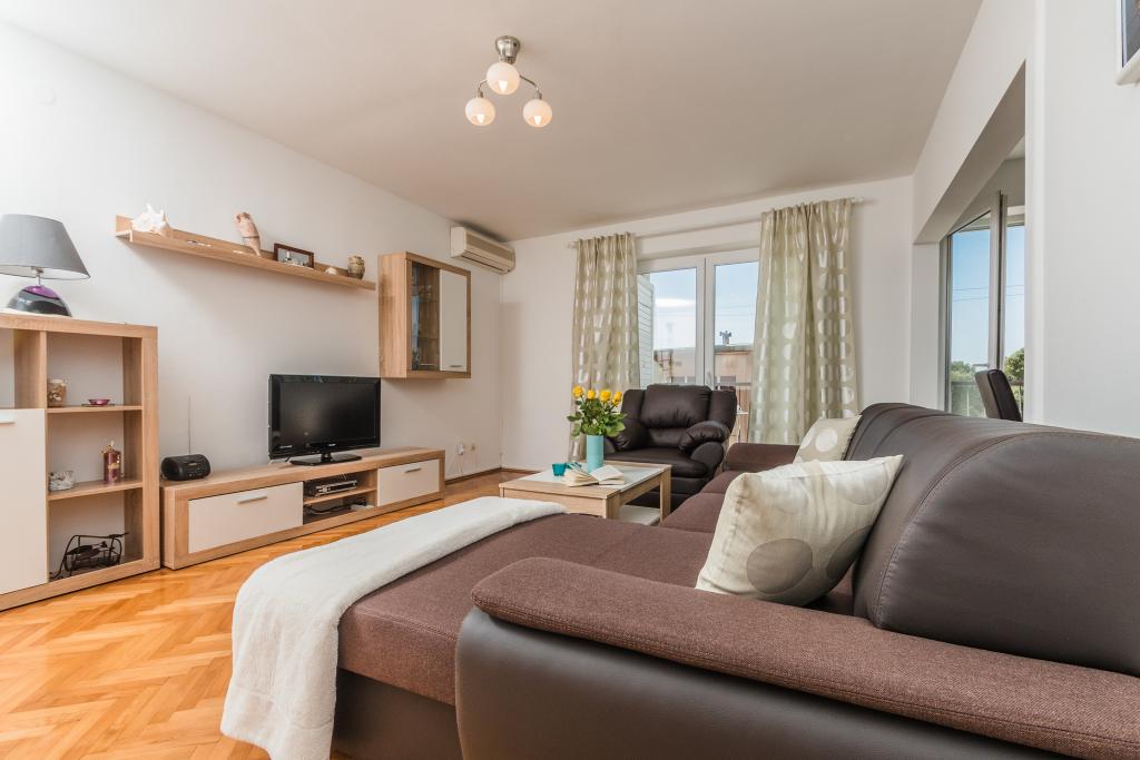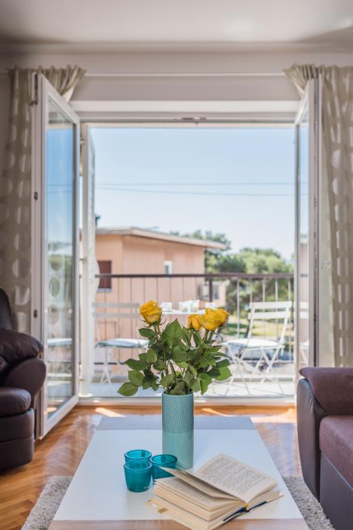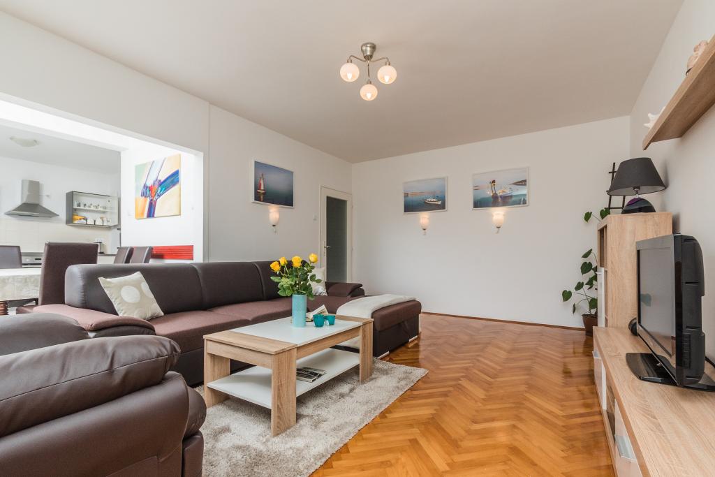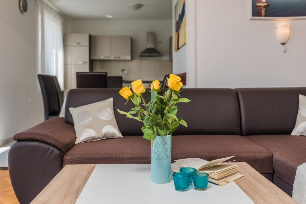 Stanovanje Marty se nahaja v centru Crikvenice! Stanovanje je 76m2 in se nahaja v stanovanjskem bloku, v 2. nadstropju in v apartmajih manj kot 50 m se nahajajo pošta, banka, trgovine, avtobusna postaja, plaža. To je zelo lepo in udobno, in je sestavljena iz popolnoma opremljena kuhinja, jedilnica, kopalnica z WC-jem, WC, dnevno sobo, dve spalnici in balkon. Parkirišče je javno.