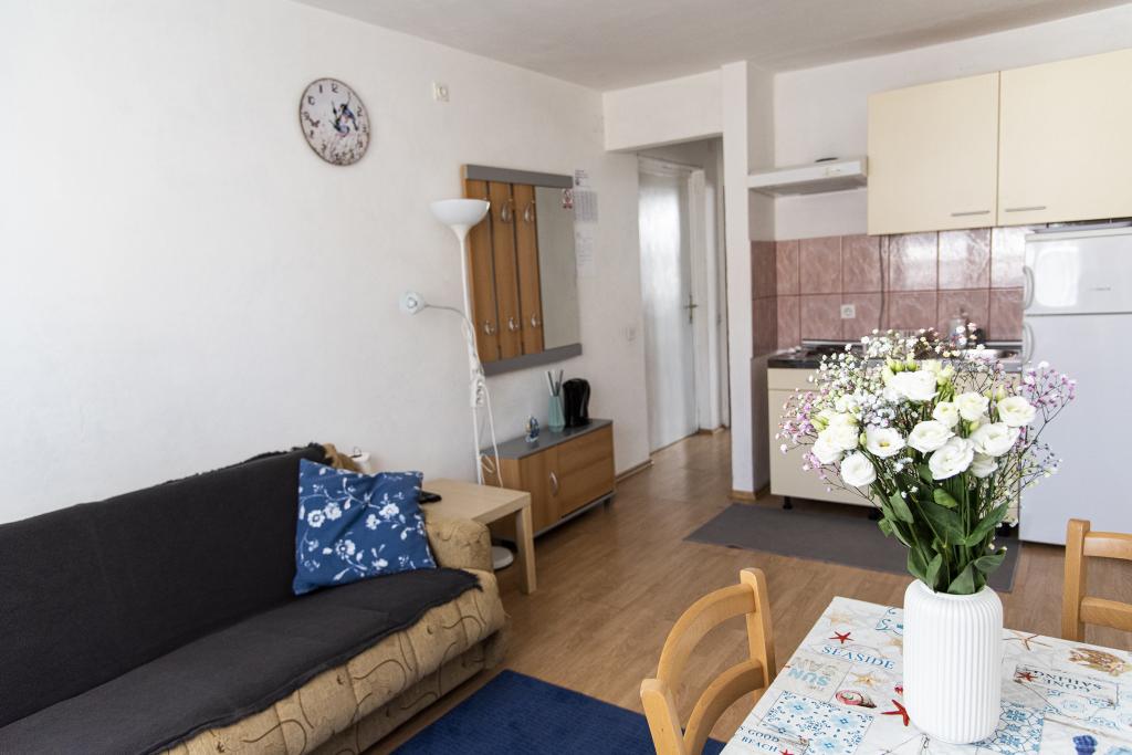 Turistična taksa je vključena v ceno. Dokument o potrditvi rezervacije ob rezervacijiApartma se nahaja v mirni ulici in blizu (6-7 minut hoje) zelo lepe plaže z borovci. Bilo je zelo čisto (tako čistega apartmaja na Hrvaškem še nisem videl). Je del apartmajske hiše s 3 apartmaji za goste (+ eden, kjer živita lastnika). Bili smo družina z dvema otrokoma (8 in 10 let) in apartma A2+1 (ID: 75057) nam je bil glede prostora povsem v redu, saj je okoli hiše več prostorov (velika paviljon in dvorišče), kjer lahko jeste, se igrate, pogovarjate, poslušate glasbo. To vam bo še posebej všeč, če ste tam z drugo družino ali skupino prijateljev (imate 2 ali 3 apartmaje). Poleg tega imate v kuhinji pomivalni stroj - to boste resnično cenili, v kopalnici pa je tudi pralni stroj. Stanovanje (ID: 75057) je v resnici videti bolje kot na slikah. Cena bivanja je zelo ugodna. Lastniki so zelo prijazni, odzivni in dobro govorijo angleško.