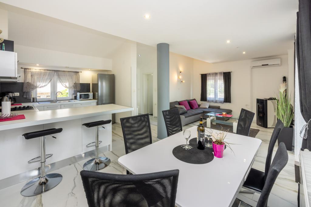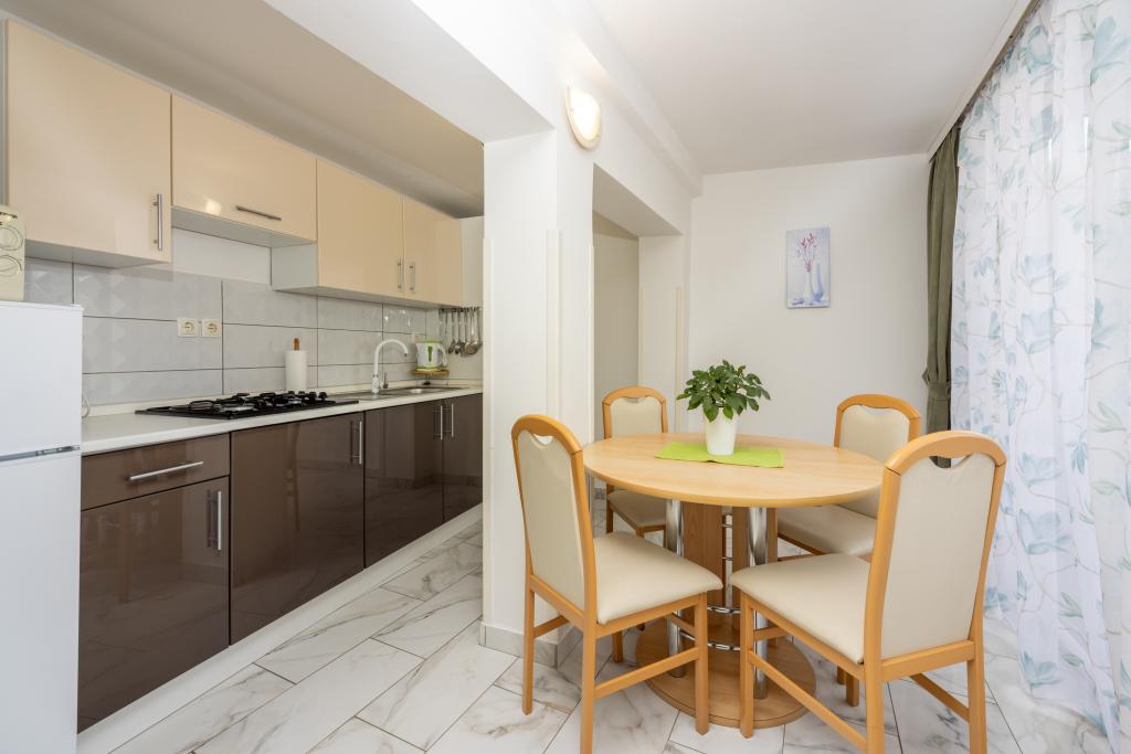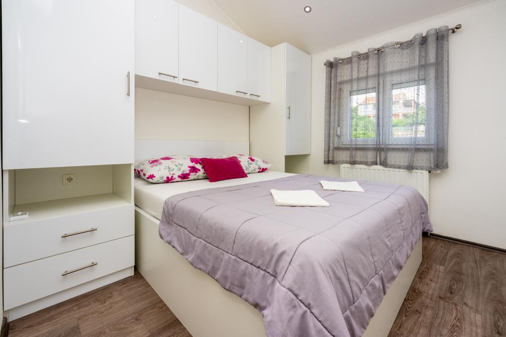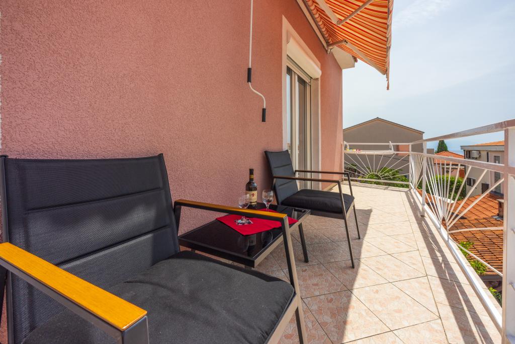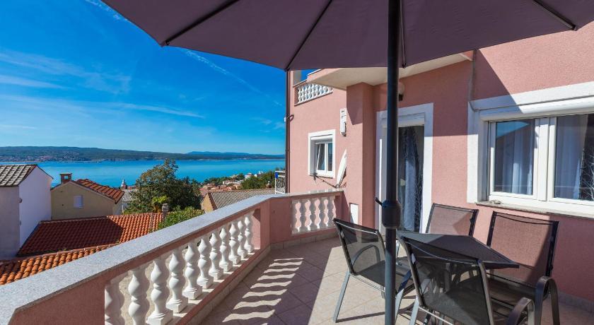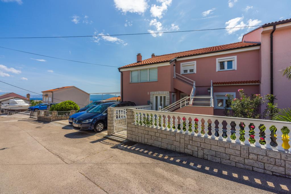 Zelo lep objekt v mirnem delu Crikvenice, varovano parkirišče znotraj objekta. Dva apartmaja se nahajata v istem nadstropju, tako da je možno namestiti 8 oseb v istem nadstropju, cca. (4 1 in 2 1). Cena apartmaja vključuje turistično takso, klimatsko napravo in Wi-Fi. Vsak apartma ima svojo teraso s pogledom na morje in možnostjo uporabe žara. Hišni ljubljenčki se doplačajo 10 evrov na dan.
