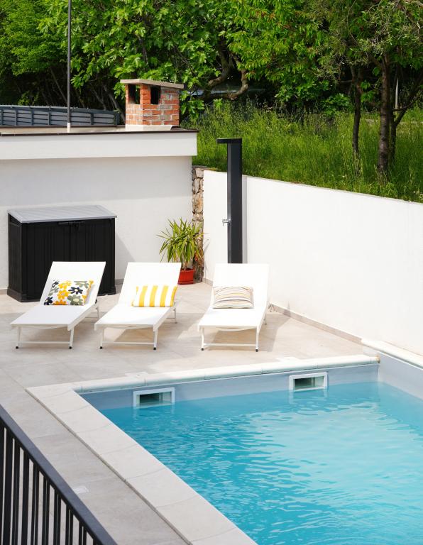 Nastanitev gostom ponuja zasebni zunanji bazen, opremljen s solarnim zunanjim tušem, žarom in družabnim prostorom s trdno klopjo in mizo. Ob bazenu so ležalniki. Bazen je odprt od 9.00 do 20.00, uporaba pa je na lastno odgovornost. Pravila uporabe in obnašanja so na voljo v apartmaju in se o njih lahko dodatno dogovorite z lastniki. Opomba: Bazen je odprt od 15.05. do 01.10.2024. Parkirišče se nahaja tik ob nastanitvi.