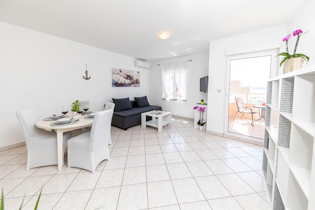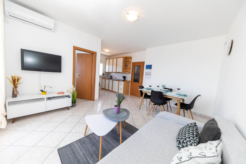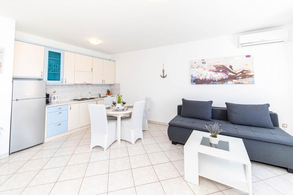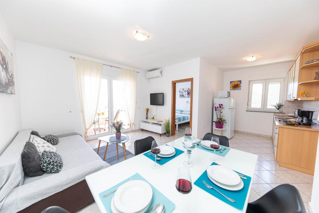 Turistična taksa je vključena v ceno.Apartma je čist in dovolj velik, terasa ima zelo lep razgled na mesto, v bližini je veliko čudovitih plaž. G. in ga. Prpić sta naju zelo lepo sprejela. V bližini je avtobusna postaja, ki vozi tudi v druga mesta v bližini Selc.