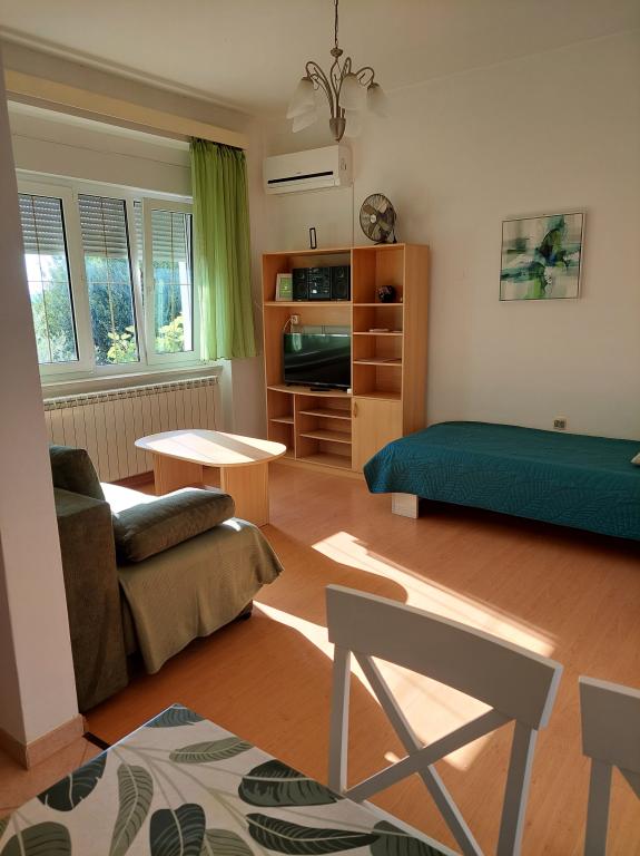 Apartmaji Sandra se nahajajo v družinski hiši v crikveniškem soseski vila. Iz mesta se nahaja 1,5 km do peščene plaže je le 2 min hoje. V bližini je vrsta zabavnih in rekreativnih objektov, supermarket, restavracija, malo pristanišce, Talasoterapijo. Gostje lahko izbirajo med dvema sodobnih apartmajih: Pritličje stanovanje z ločenim vhodom, gostje lahko uporabljajo teraso ali apartma na 1. nadstropju z balkonom s pogledom na morje. V stanovanje v pritličju so dobrodošli in malih živali!
