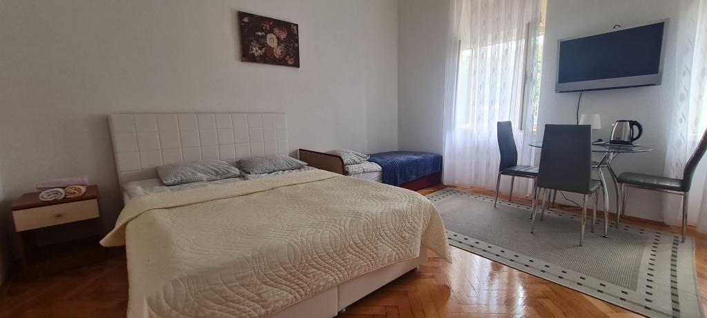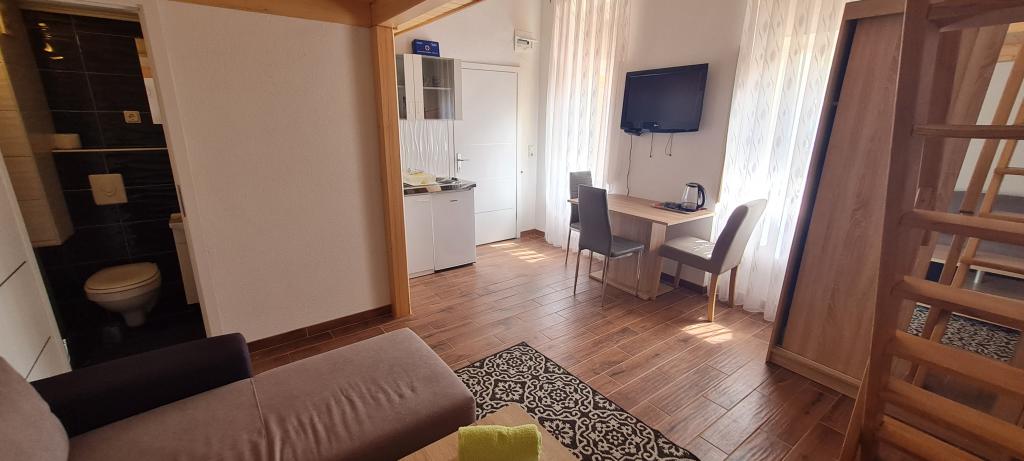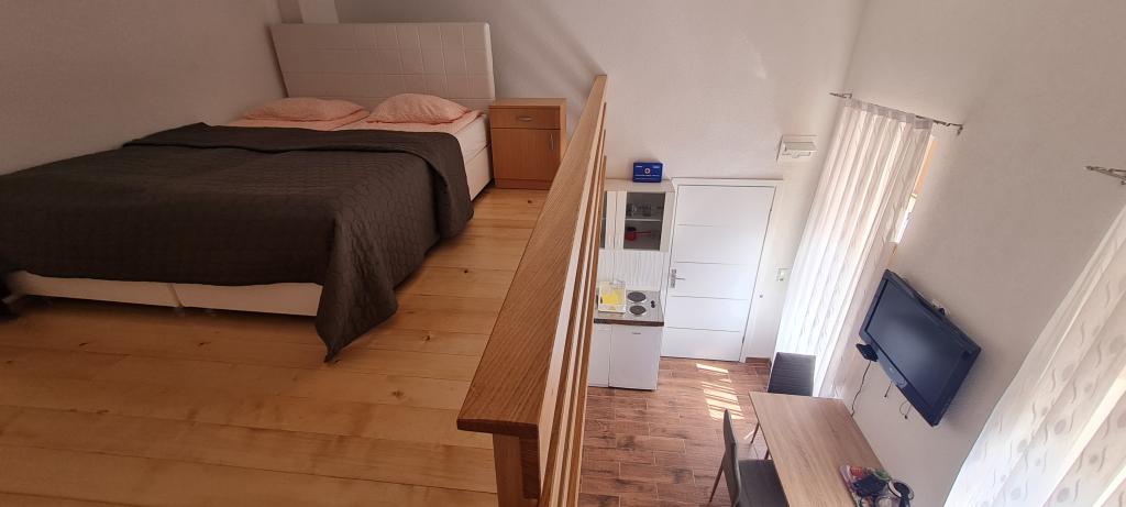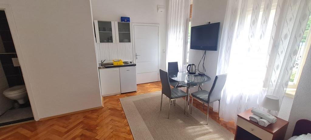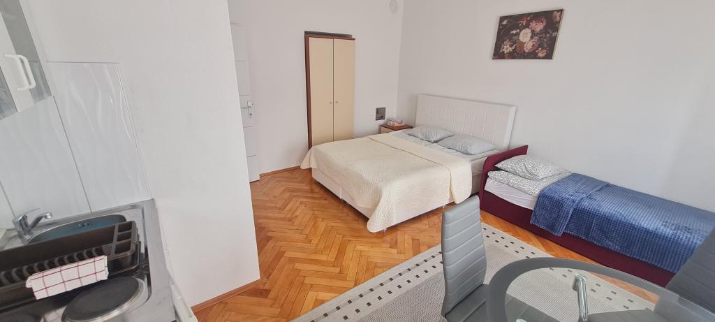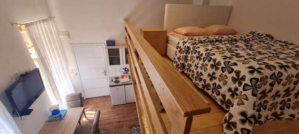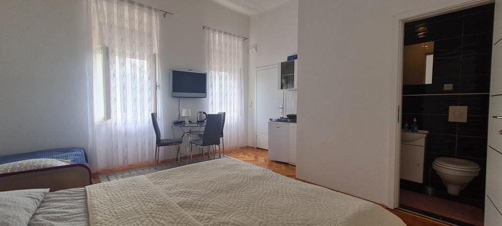 To oceno pišem, da opozorim druge, ki nameravajo preživeti počitnice tukaj. Lokacija apartmaja je res blizu centra, plaže in trgovin. Apartma je čist in urejen. Lani smo bivali v spodnjem apartmaju in vse je bilo v redu, razen postelje, do katere je bilo mogoče dostopati po stopnicah in si moral paziti, da si pri vstajanju ne udariš z glavo. Ker je bila to naša edina pomanjkljivost in smo pozno začeli iskati nastanitev, smo gospo ponovno poklicali in povprašali po zgornjem apartmaju. Čeprav je cena na spletni strani 90 € na noč, je gospa rekla, da se lahko pogajamo za 75 €, s čimer smo se strinjali. V apartmaju je ob vhodu jasno naveden cenik iz letošnjega leta, kjer je cena za dve osebi 70 € na noč za isto stanovanje. Nočitev za tri osebe stane 90 €. Ta cenik ni prikazan na spletu in ga ob najemu ne boste videli. Zadnji dve noči se nam je pridružila še tretja oseba, na kar je gospa rekla, da ni problema, a nam je zadnji dan vseeno zaračunala dodatnih 40 €. Po ceniku bi nas moralo 7-dnevno bivanje v apartmaju stati 530 €, gospa pa nam je zaračunala 565 €. Za klimatsko napravo so doplačali 5 € na dan, kot je navedeno v ceniku, vendar brez nje res nismo mogli živeti. Skupaj smo za 7 nočitev plačali 600 €. Soba je res majhna, še posebej kopalnica, studio pa vsekakor ni vreden denarja (skoraj 86 € na dan). Največja težava je bila, da ljudje pridejo na morje, da bi se sprostili, ampak gospa tega očitno ne razume. Nekega jutra je potrkala na vrata sobe in pripeljala gosta, ki je bival v sobi spodaj, da bi prišel pogledat našo. Moram omeniti, da sem takrat še spal. Vsak dan je gospa pripomnila, da spim predolgo. Ker gospa živi v isti hiši kot sobe, ni pravega miru. Njen mobilni telefon je nastavljen na polno, nenehno hodi mimo sobe, se pogovarja z družino itd. Pri ceni 86 evrov na noč resnično pričakujem svoj mir in ne bom moral nenehno "čakati", da gospa pride v mojo sobo. Poleg tega je lani preprosto vstopila v sobo, ne da bi potrkala. Parkirišče ni pred hišo, ampak nekje višje, vendar avtomobila nismo uporabljali, zato nas to ni motilo. Žal nobene od teh namestitev ne priporočam za bivanje, daljše od ene/dveh noči.