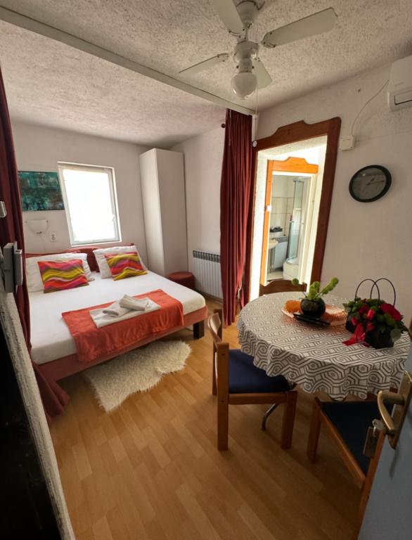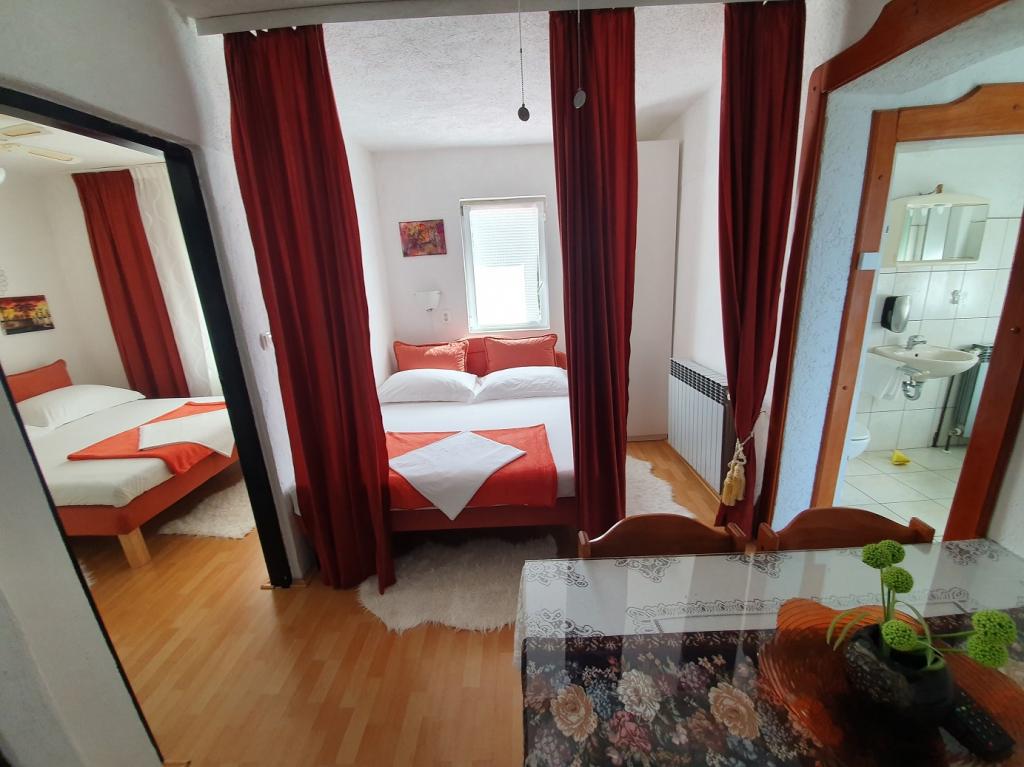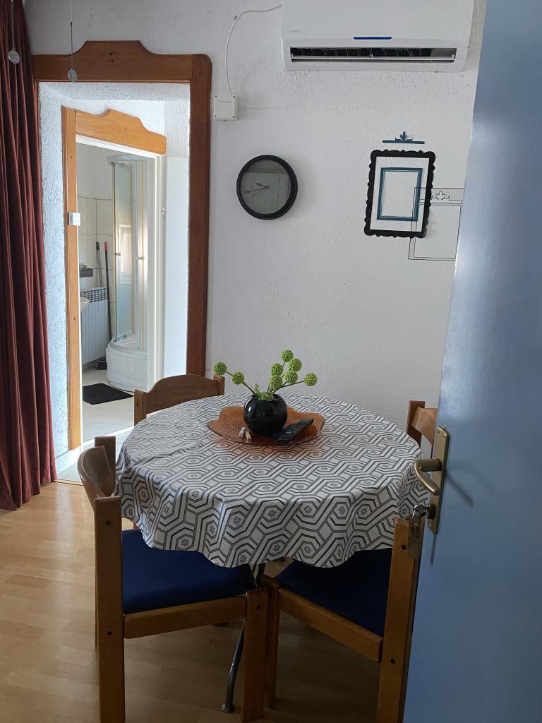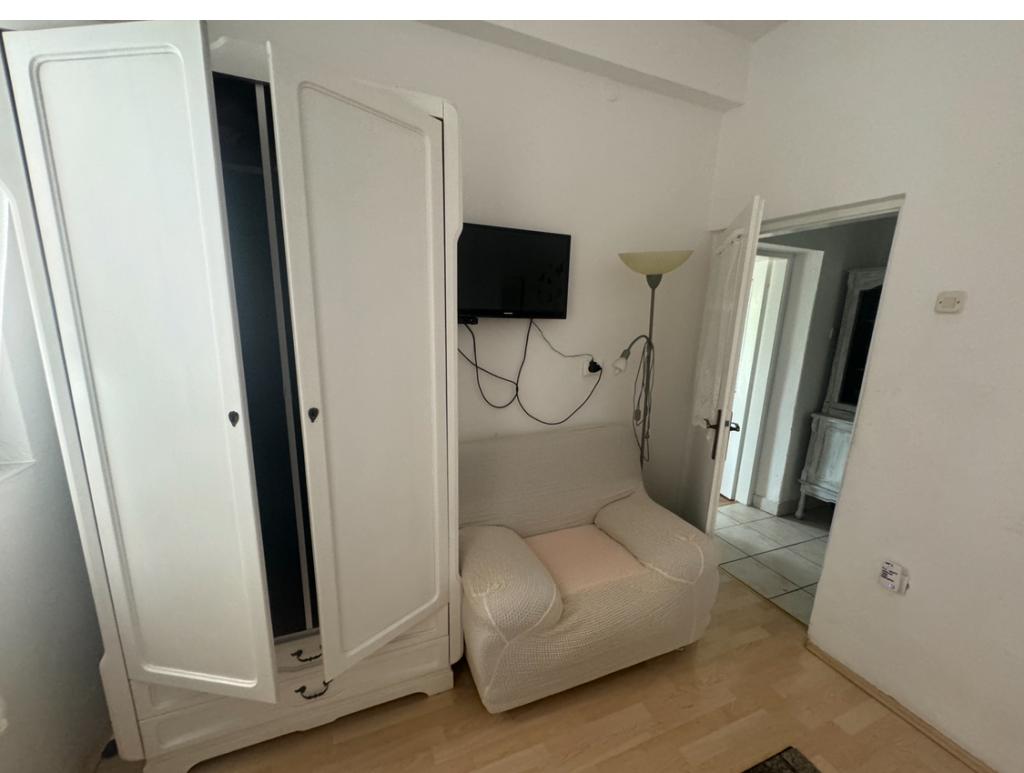 Preberite več Namestitvene enoteV tedenski najem apartmaja je vključena normalna poraba elektrike, vode, posteljnine (1 komplet), jedilnega pribora in kuhinjskih pripomočkov. Prijava od 14h, odjava do 10h. Turistična taksa je vključena v ceno najema apartmaja. Klimatska naprava se doplača 10 evrov na dan. Najem klimatske naprave je neobvezen. Vsaka zloraba in nepooblaščen zagon klimatske naprave, brez soglasja gostitelja, ki priskrbi ključ za zagon in daljinski upravljalnik, se zaračuna 200 eur. Dodatno ležišče se doplača po ceniku, odvisno od dela sezone od 10-15 eur. Za bivanje do 3 noči plačate 30% več od običajne cene. Ob rezervaciji je potrebno 20% akontacijo, minimalno 100 eur, preostali del pa ob prihodu na dan prevzema apartmaja. Velike brisače niso vključene v ceno najema.