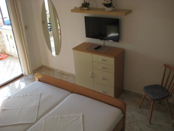 Turistična taksa nije vključena v ceno.V teh apartmajih smo preživeli čudovit čas. Dobra lokacija, čiste in ravne sobe z dobro opremljenimi prostori, nedaleč od morja, veliko plaž v 5-10 minutah hoje. Večina sob ima ločen vhod, kar je zelo udobno. Sobe so dobro načrtovane z mislijo na vzdrževanje temperaturnega ravnovesja, zato klimatske naprave ne potrebujete. Tudi lokacija apartmajev je dobra, saj lahko v 5 minutah vožnje z avtomobilom dosežete vsaj tri supermarkete, vključno z velikim Lidlom v 10-15 minutah hoje. Odsotnost glasnih in brutalnih Rusov je privilegij. Voda v morju je čista in mirna, plaže pa so nekoliko prenatrpane, vendar boste vedno našli ločen prostor. Morda bo nekoliko šibek wi-fi povzročal nelagodje, vendar za nas to ni bil velik problem, saj smo uporabljali internetno gostovanje. Lastniki so bili zelo gostoljubni in prisrčni.