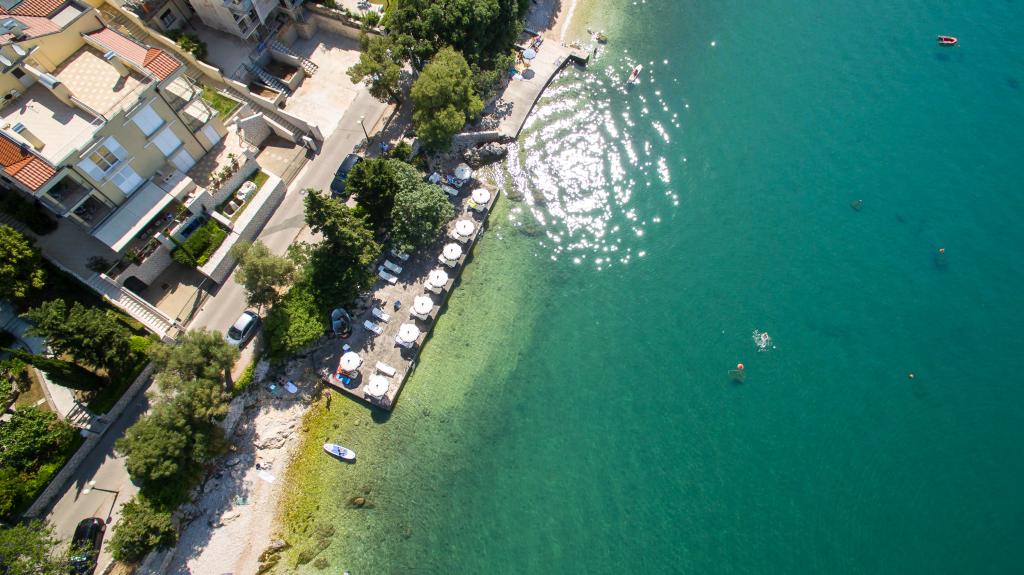 Vila Mare Crikvenica se nahaja neposredno na plaži, v stanovanjskem delu Crikvenice, imenovanem Crni mol. Vila ima pet apartmajev in 3 dvoposteljne sobe ter ponuja brezplačno parkiranje, WiFi internet in brezplačno uporabo ležalnikov in senčnikov na plaži pred hišo. Vsi stroški so vključeni v ceno.