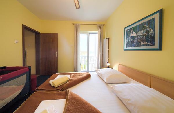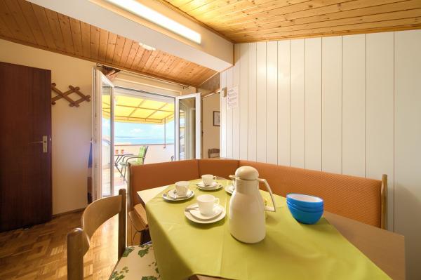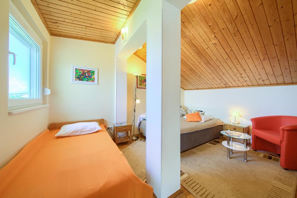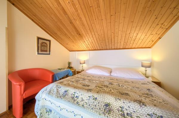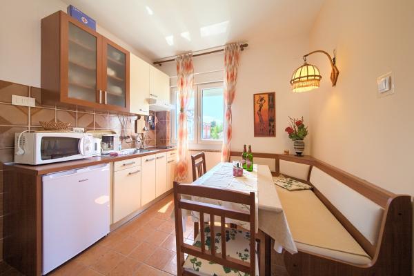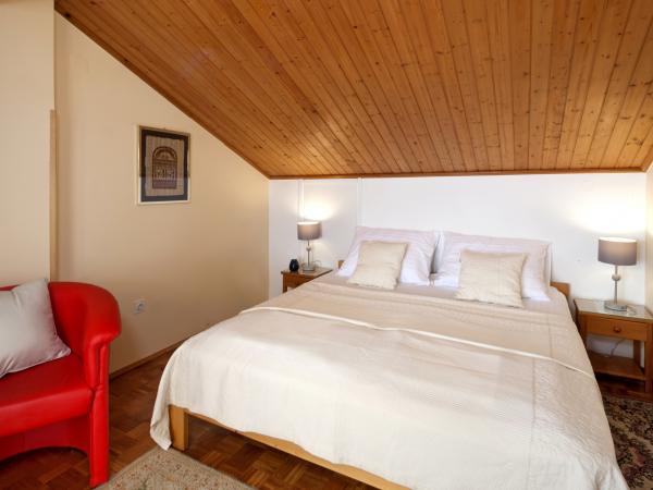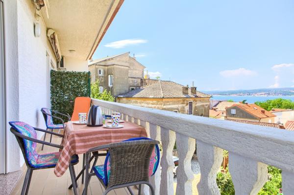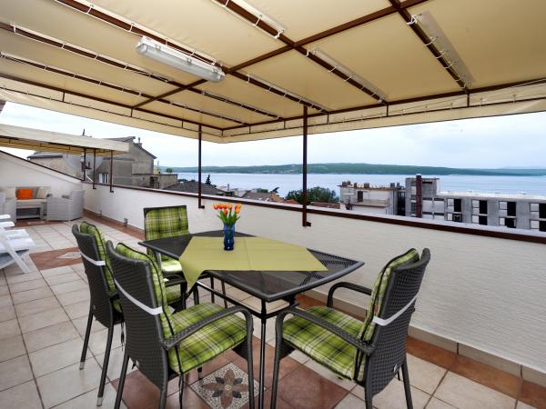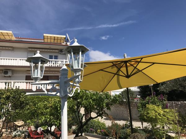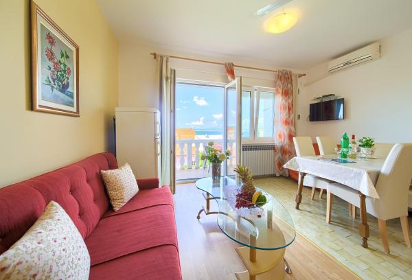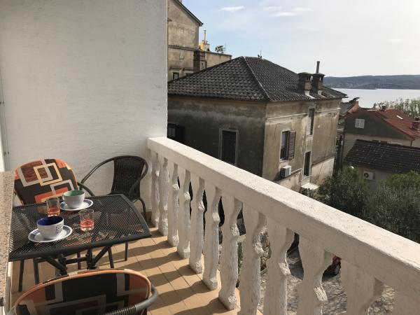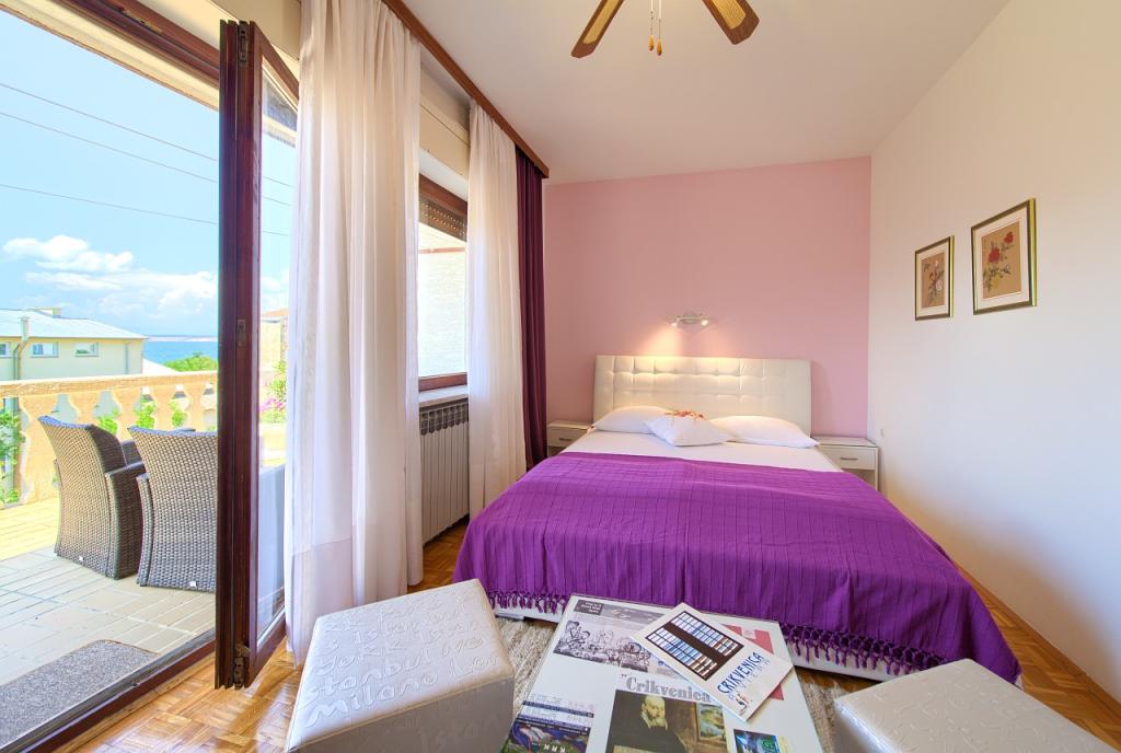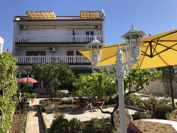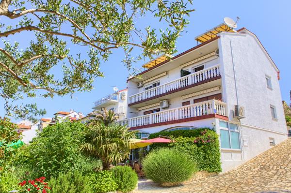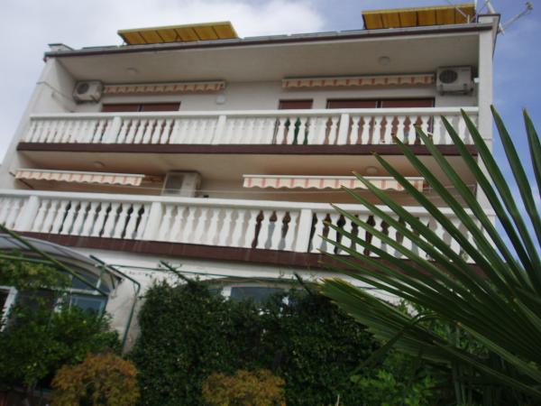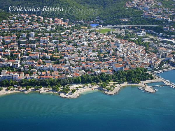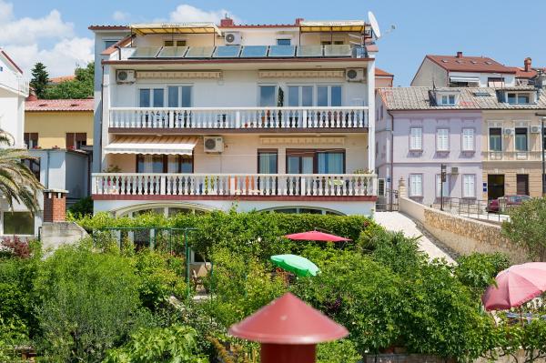 Ograjena vila v središču Crikvenice, druga vrsta do morja, 3 minute hoje do plaže in promenade ter 5 minut do centra. Urejen vrt, vrt z žarom in kaminom za goste ter zaklenjeno parkirišče. Hiša ima 4 udobne apartmaje s pogledom na morje, mestne vrtove in otok Krk. Tri in štiri zvezdice. 3 apartmaji za 4-5 oseb in 1 apartma za 2-3 osebe. 4 zvezdice. Vsi APARTMAJI so udobno opremljeni z lastno teraso ali balkonom. , SAT TV, brezžični internet, klimatska naprava, sef za denar in dragocenosti, opremljene kuhinje z vsemi aparati in možnostjo uporabe vrtnega žara. Odpiralni dnevi od 1.05.-30.09. vsako leto. Zimsko obdobje odprtja: na posebno zahtevo, apartma za 4 osebe in apartma za 2 osebi s centralnim ogrevanjem, balkoni in pogledom na mestne vrtove in otok Krk.