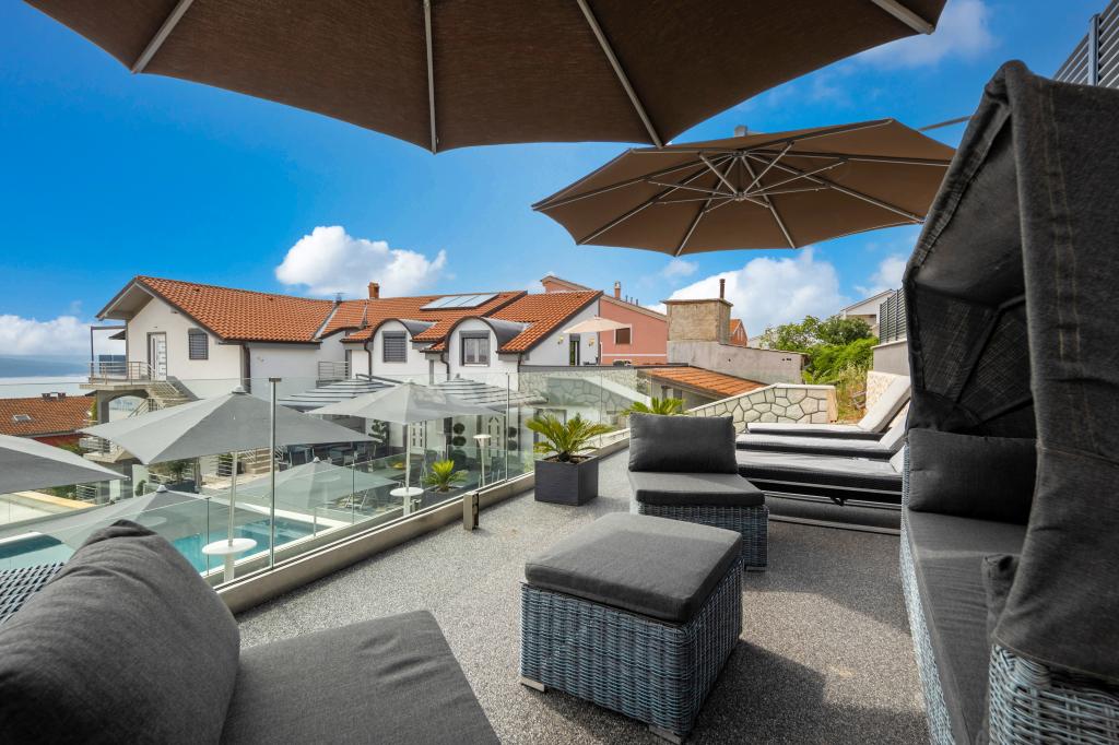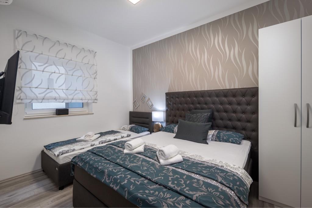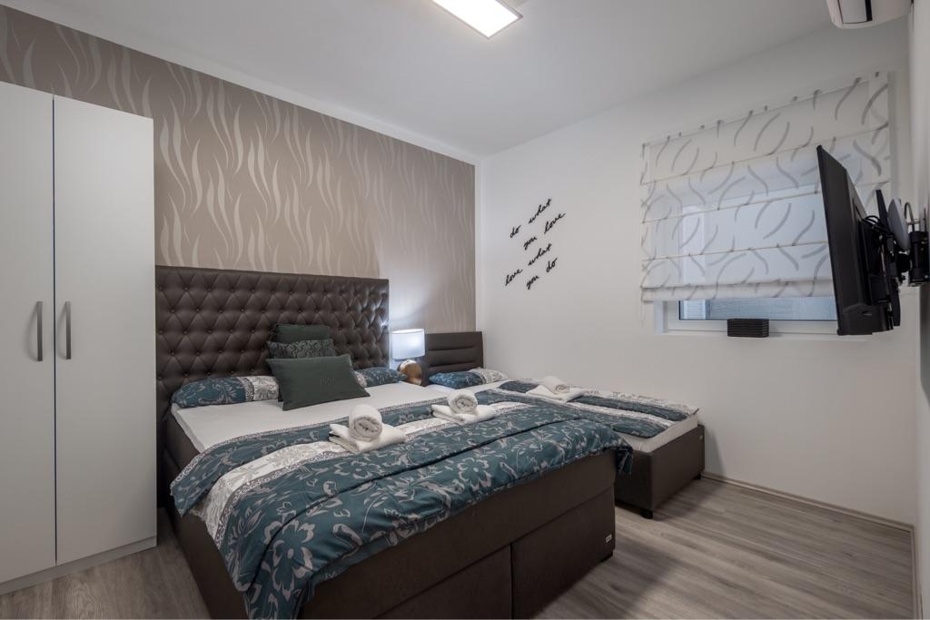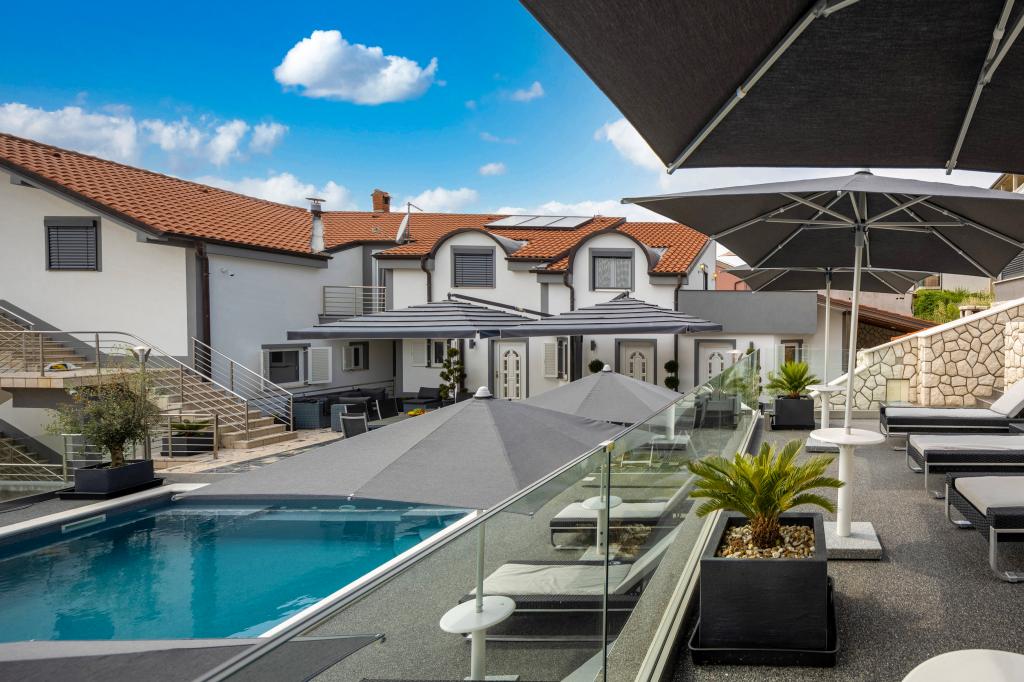 Turistična taksa je vključena v ceno.Popolnoma in moderno opremljeni apartmaji, veliko parkirišče, velika terasa z žarom in plinskim žarom, vsi apartmaji so opremljeni z interno in satelitsko televizijo. Skupna velika terasa z bazenom 10,5 m x 5,5 m je lahko tudi ogrevana. Velika terasa za sončenje. Kakovostni ležalniki za sončenje in ležalniki