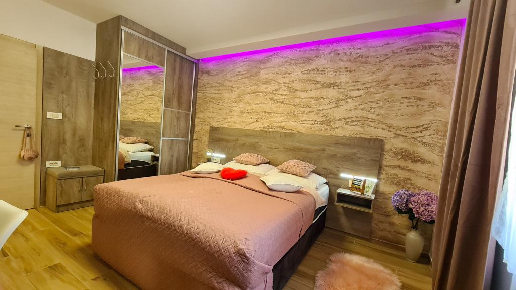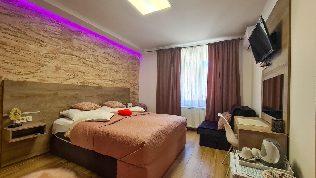 Sobe so opremljene z vrhunskimi hotelskimi posteljami, z vzmetnicami visokega razreda, vsaka soba ima LCD TV, brezplačen brezžični internet, lastna kopalnica pa je urejena po najsodobnejših standardih. Prav tako ima vsaka soba posebno LED osvetlitev za ustvarjanje prijetnega vzdušja, ki bo pripomoglo k posebnemu vzdušju vašega bivanja pri nas. Ob objektu so parkirišča, ki jih ni treba posebej rezervirati. V sobah vas bodo pričakali z majhnim znakom pozornosti v obliki instant kave, čokoladic in bonbonov, po želji pa lahko uporabite tudi našo wellness in spa oazo, ki se nahaja v sklopu objekta.