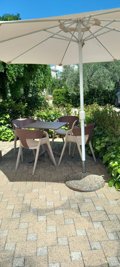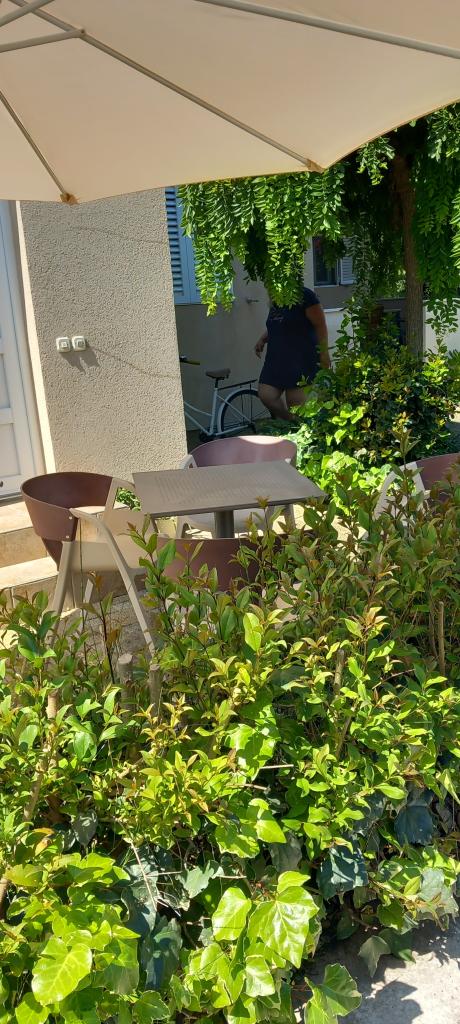 Vse je kot na slikah, stanovanje je dobro opremljeno, urejeno in čisto, lepa terasa kot tudi celotno dvorišče z veliko zelenja in sence. Bazen je odličen, dobro vzdrževan, otrokom je bil všeč. Čudoviti gostitelji, vedno na voljo in zelo prijazni. Plaža je oddaljena 1 min hoje, kamnita. Zaradi otrok smo šli na malo bolj oddaljeno plažo, ki je peščena. Vsa priporočila! Zagotovo se bomo še vrnili.