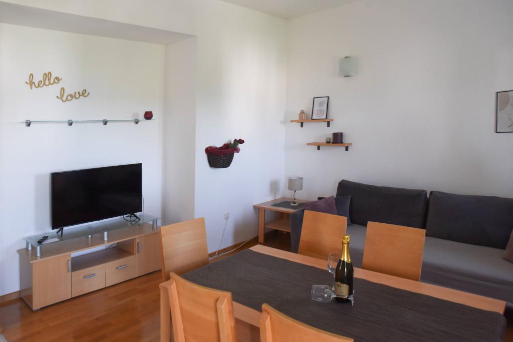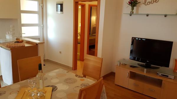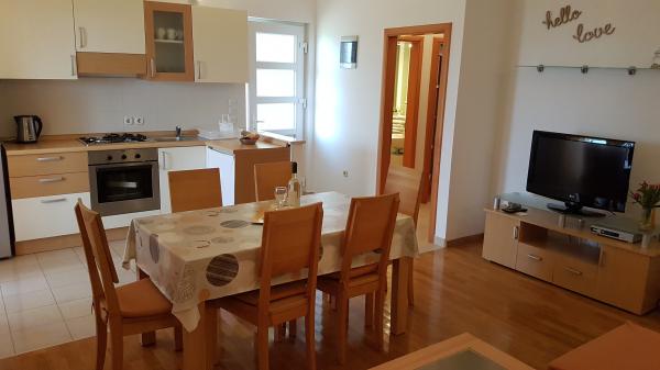 Odlična komunikacija in dogovori z ga. Jasenko in g.Brankom, apartma je izpolnil naša pričakovanja (klima, čistoča, udobne in dovolj velike postelje, dovolj posode, velik hladilnik z zamrzovalnikom, pogled na morje s terase..), zavarovan parkirni prostor in pa seveda zelo lepo negovan in vsakodnevno čiščen zunanji ograjen bazen z dovolj ležalniki in senčniki. Vsekakor je cena najema primerna glede na to kar nudi, zato jo močno priporočam nadaljnim gostom. Hvala gostiteljema za vse!
