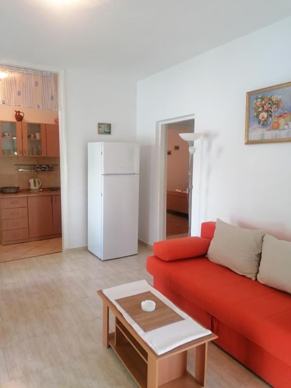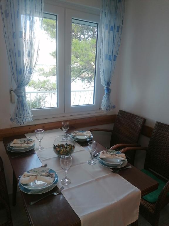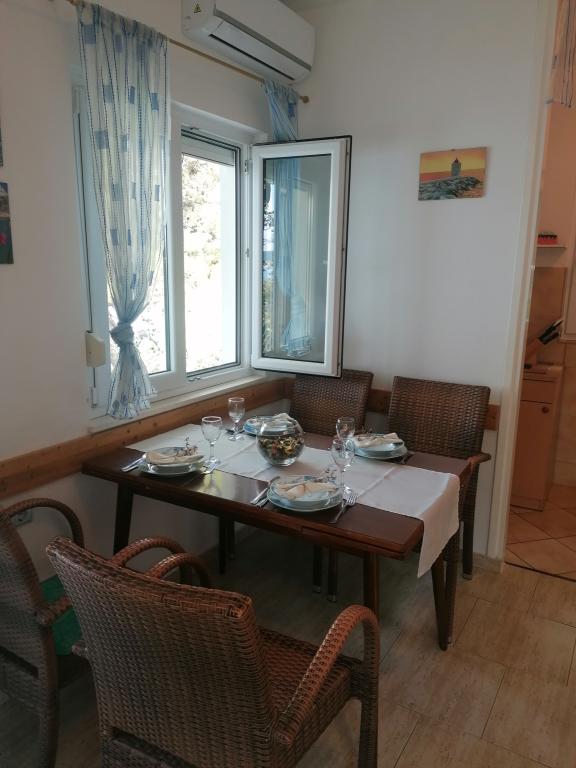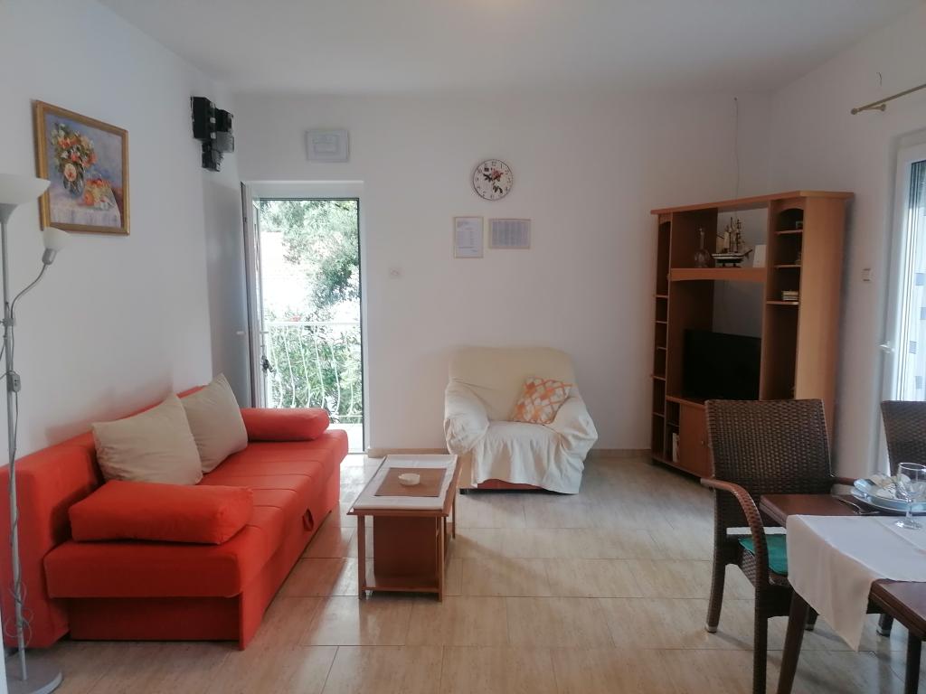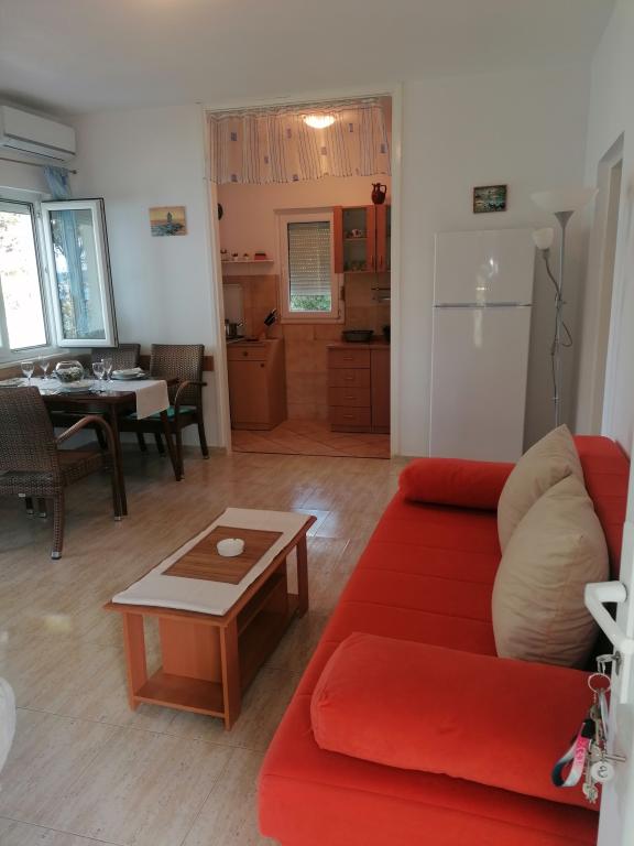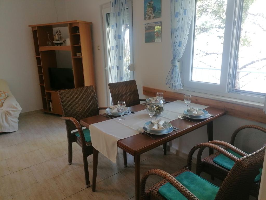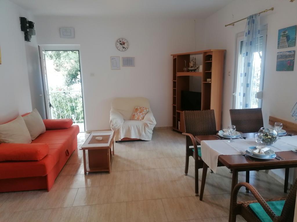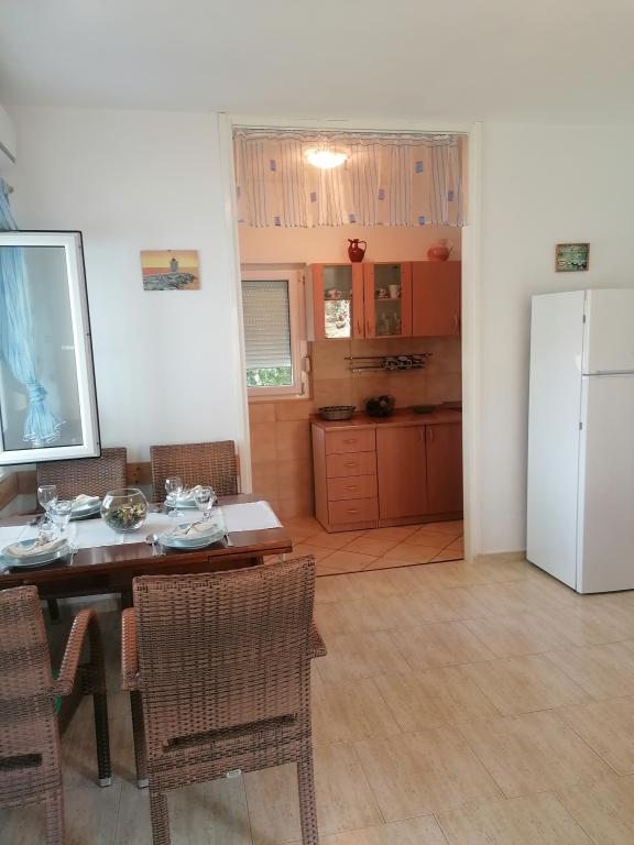 Apartma je zelo dobro opremljen, nahaja se v senci borovcev, zelo blizu plaže in morja, čist in s čudovitim pogledom na morje in gore z dolgega balkona. Gostiteljica je zelo prijazna, prijazna in vedno pripravljena pomagati. Toplo priporočam za miren, odličen dopust.