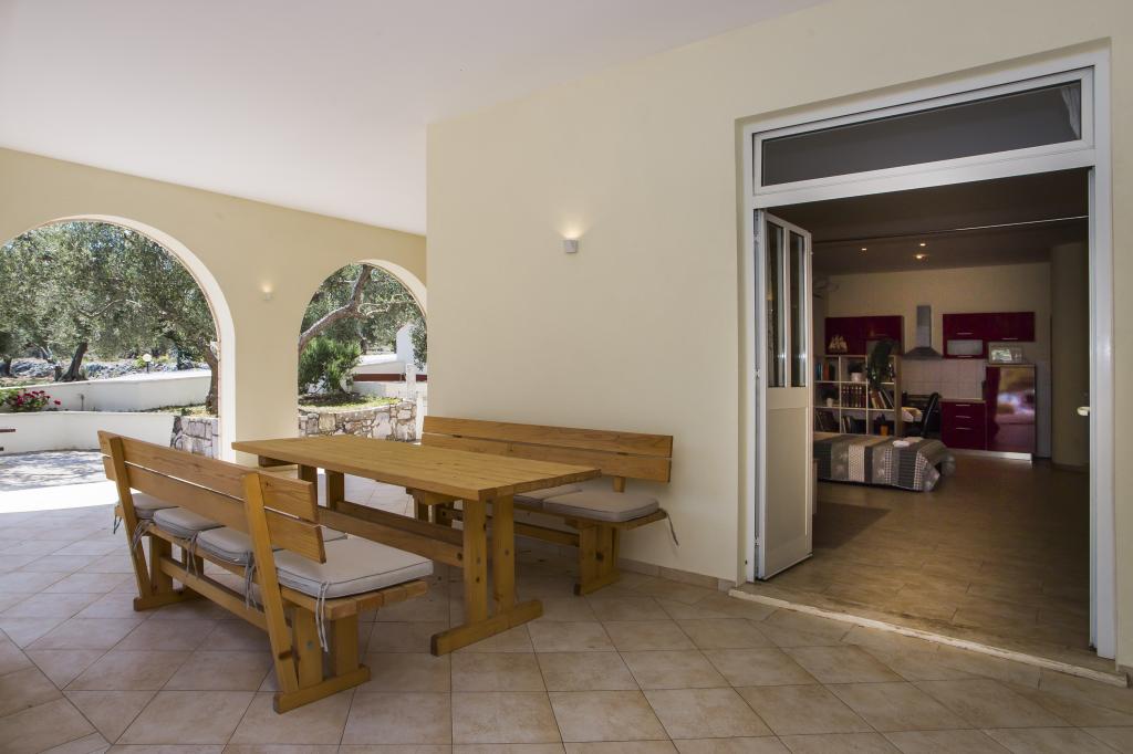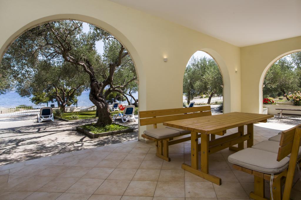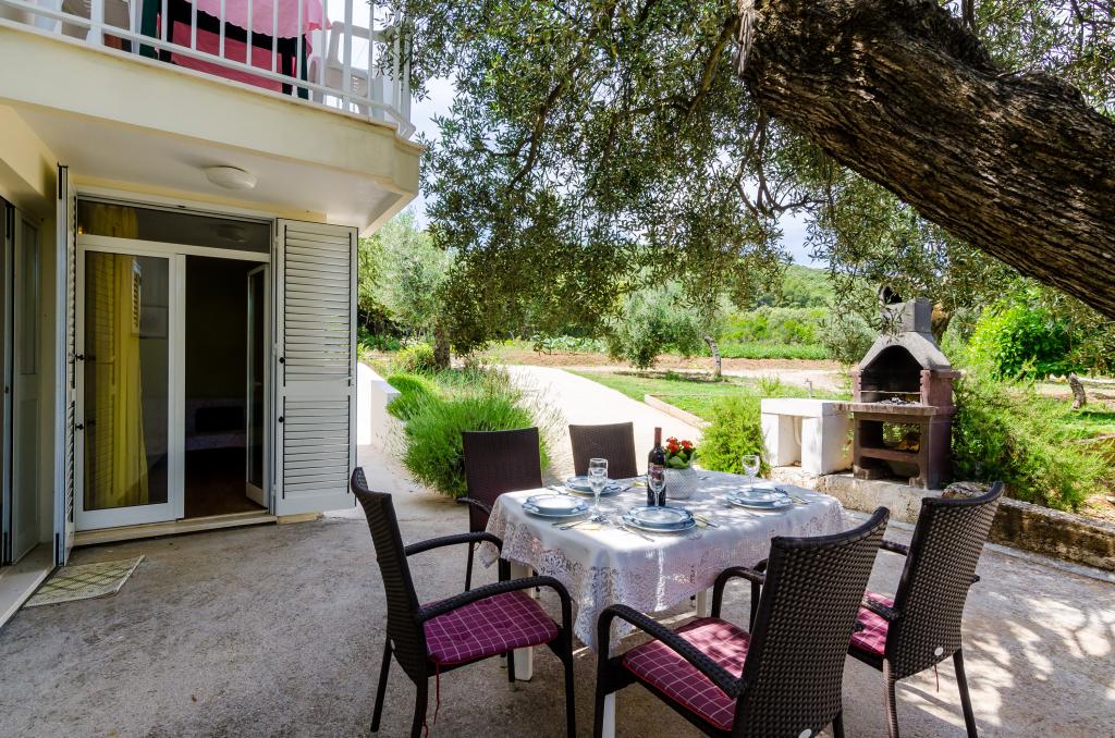Hiša je oddaljena 20 metrov od prodnate plaže z drobnim peskom v morju. Od vasi Drače (80 km od Dubrovnika) je oddaljena 500 metrov in se nahaja v velikem oljčnem nasadu (10.000 m2). V pritličju so trije apartmaji, v prvem nadstropju pa en apartma. Gostom je na voljo brezplačen WiFi in dva žara (velik skupni žar in majhen ločen žar za apartma A1). Parkirišče je zagotovljeno za vsa vozila. Vsi apartmaji imajo pralni stroj. Vsi apartmaji so klimatizirani. Cena namestitve vključuje tri ležalnike na plaži.