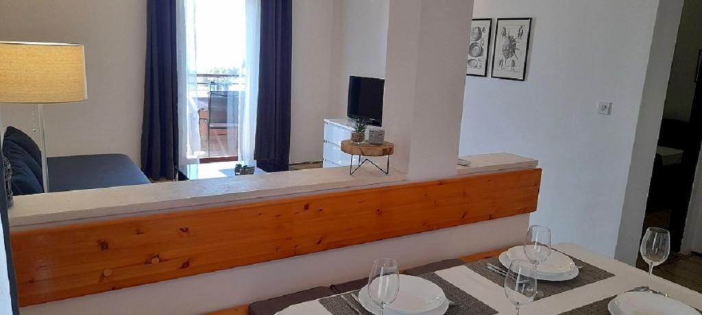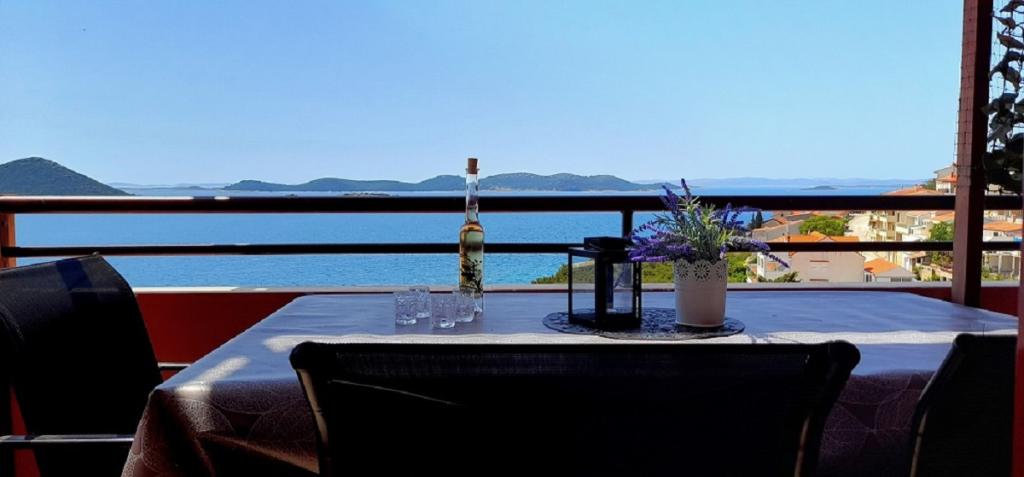 Apartma Mima se nahaja v kraju Drage, v zalivu Dolaška draga, kjer se nahaja velika prodnata plaža in nešteto majhnih tlakovanih plaž, obdanih z gostim borovim gozdom, ki daje naravno senco. Gostom je na voljo tudi čudovito sprehajališče "lungo mare", otroški park in več prijetnih kavarn. Apartma se nahaja v drugem nadstropju in ponuja spektakularen pogled na Kornate. Od plaže je oddaljen 300 m.Apartma ima eno spalnico, kopalnico, kuhinjo z dnevno sobo z raztegljivim kavčem in balkon s čudovitim pogledom na morje. Gostom je na voljo klimatska naprava, wifi flat internet, pomivalni stroj, mikrovalovna pečica... Parkirišče je zagotovljeno pred apartmajem.