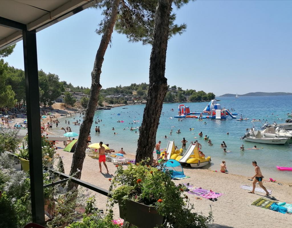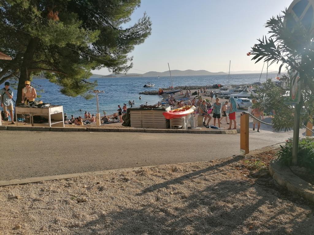 Zelo lepe sobe. Čisto, ograjeno in nadzorovano območje. Na voljo je velik žar. Blizu morja in jezera na drugi strani. Zelo priporočljivo.