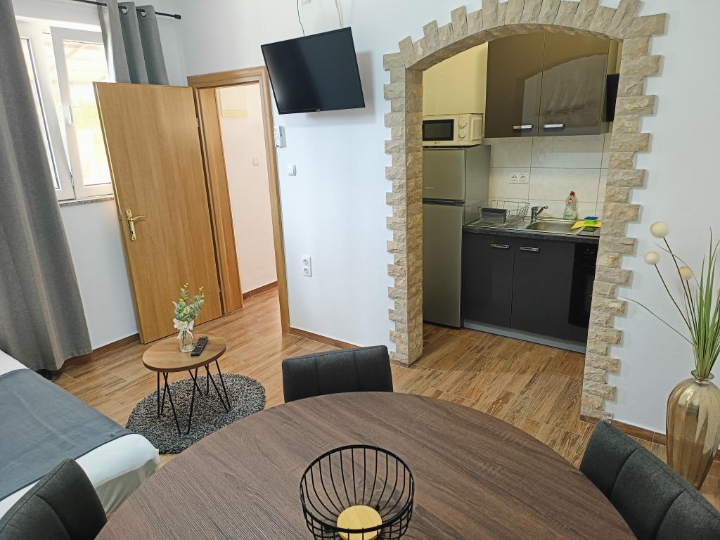 Fantastičen kraj - popoln, če imate otroke. Lep vrt, terasa, otroška igrala. Okrožje brez brezpotij, klasične hiše okoli, mir in tišina. Na vrtu oljke, granatna jabolka, limone, limete. Gugalnice za otroke. Pokrito parkirišče. Lepo osvetljen ponoči. Prostor za žar. Kar se tiče samega stanovanja - čisto, je pred generalno prenovo, tako da bo moderno v kakšnih ducat tednih. A ko prideš na Hrvaško, ne sediš raje v stanovanju, ampak samo preživljaš čas na plaži ali v mestu. Idealen kraj za počitek in sprostitev ter za otroke. Zelo družinsko vzdušje.