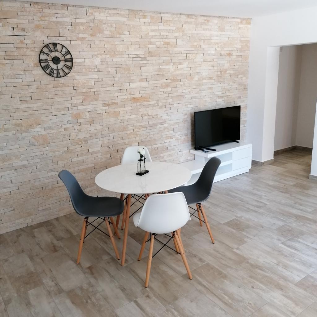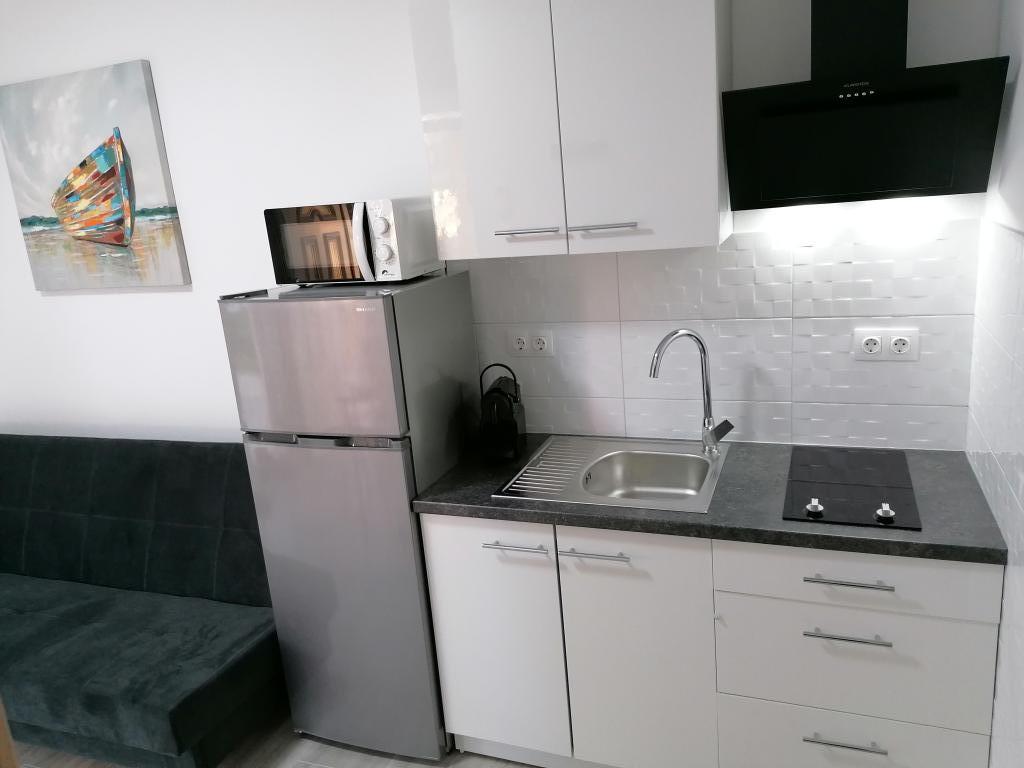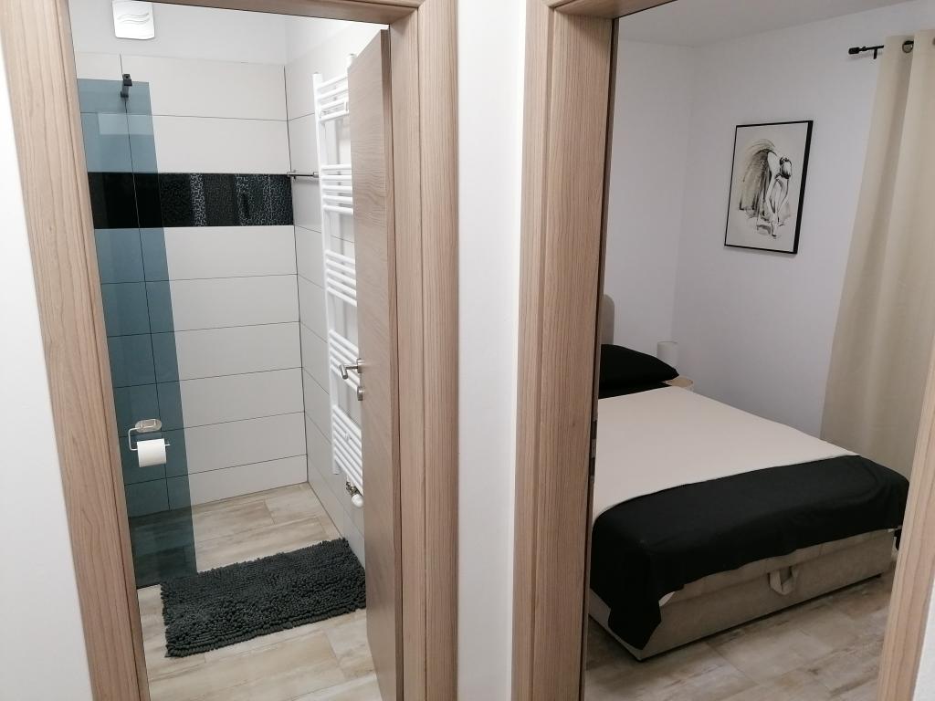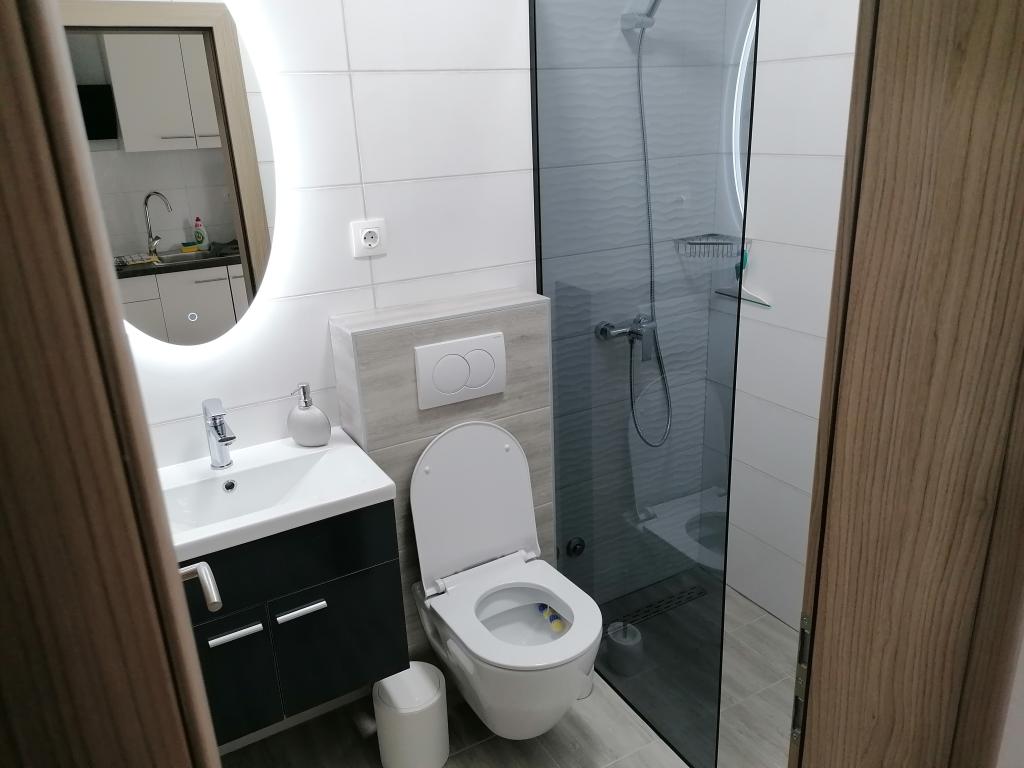 Apartma je čisto nov, urejen in čist, moderno opremljen. Okolica je precej mirna, priporočljivo za miren dopust z družino, na voljo je tudi park za majhne otroke. Apartma se nahaja na zadnji strani hiše, kjer je sonce le v zgodnjih jutranjih urah.
