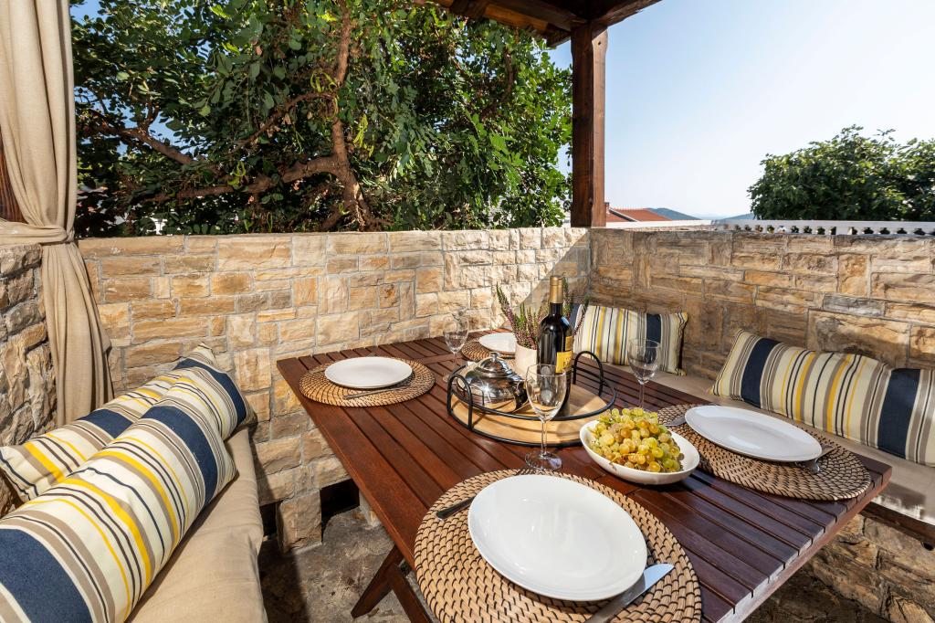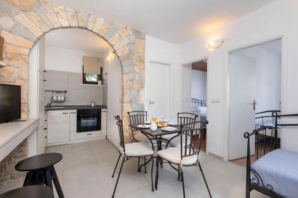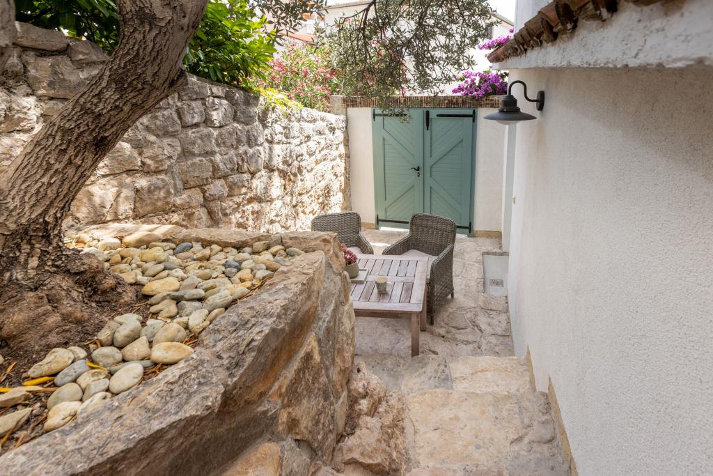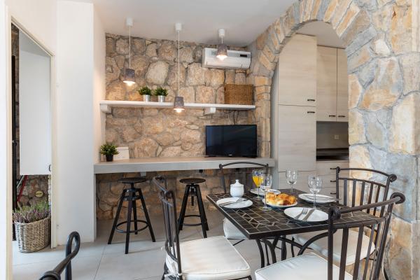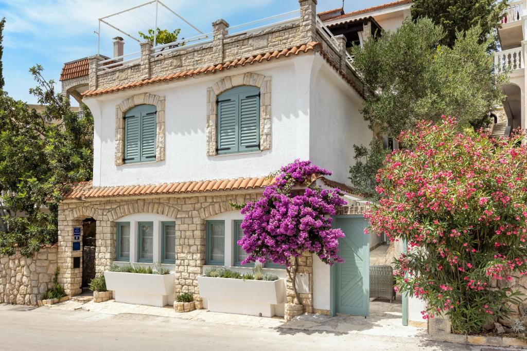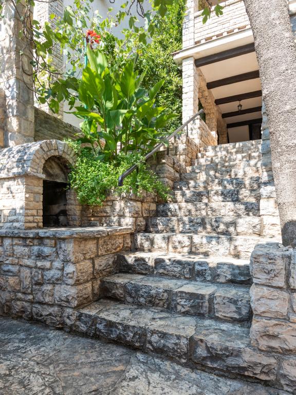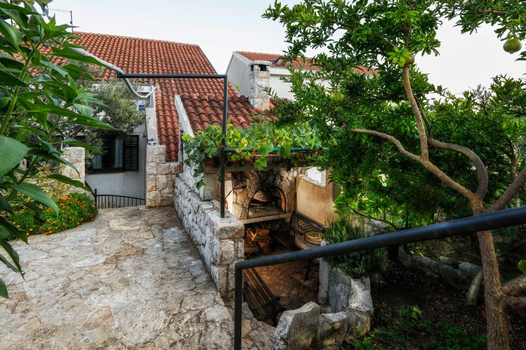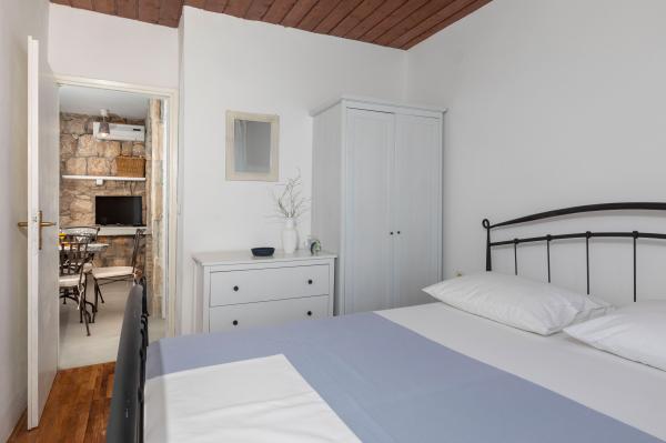Sama hiša je fantastična. Kamen, obdan z oljkami, lovorjem, figami in cvetjem. Ima kotiček z žarom, medtem ko se celo kokoši skrivajo v zadnjem delu hiše. Apartma ima čudovit razgled in vse kar potrebujete za prijeten dopust. Prijazen gostitelj. Do plaže najhitreje pridete po stopnicah. Dve ali tri minute in ste na plaži. Je malo bolj navkreber. Na plaži se vedno najde kotiček v senci. V bližini je pekarna in manjša tržnica. Na počitnicah smo se imeli super.