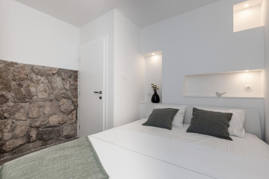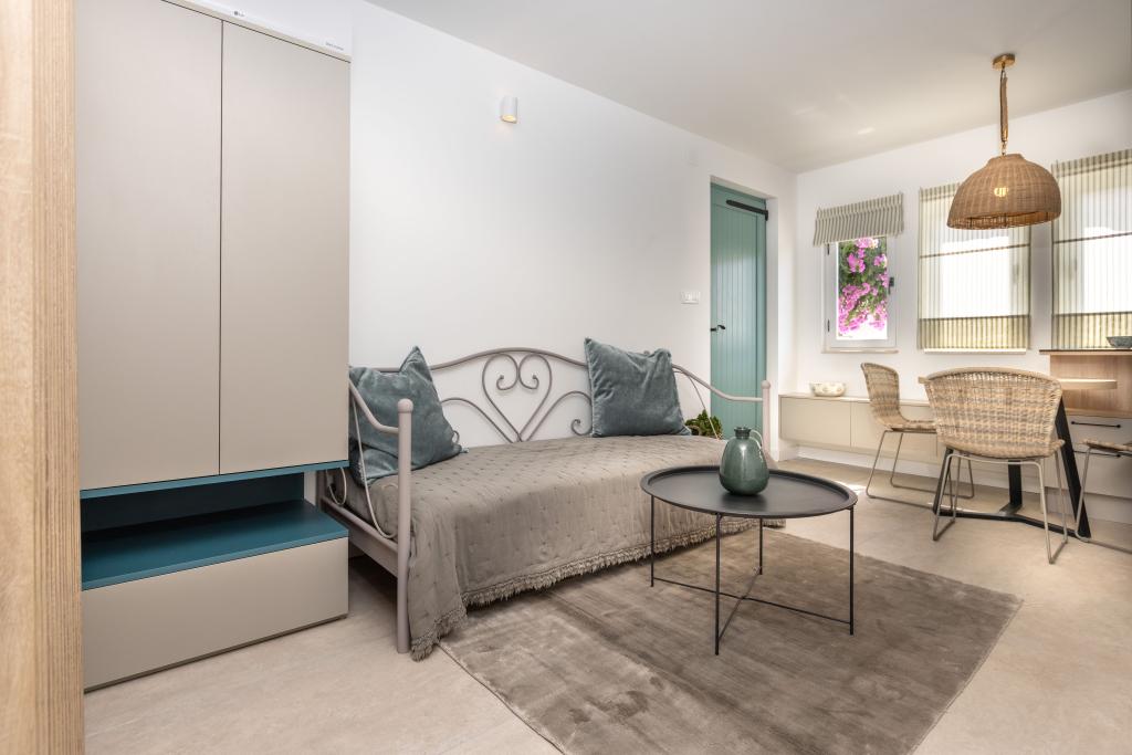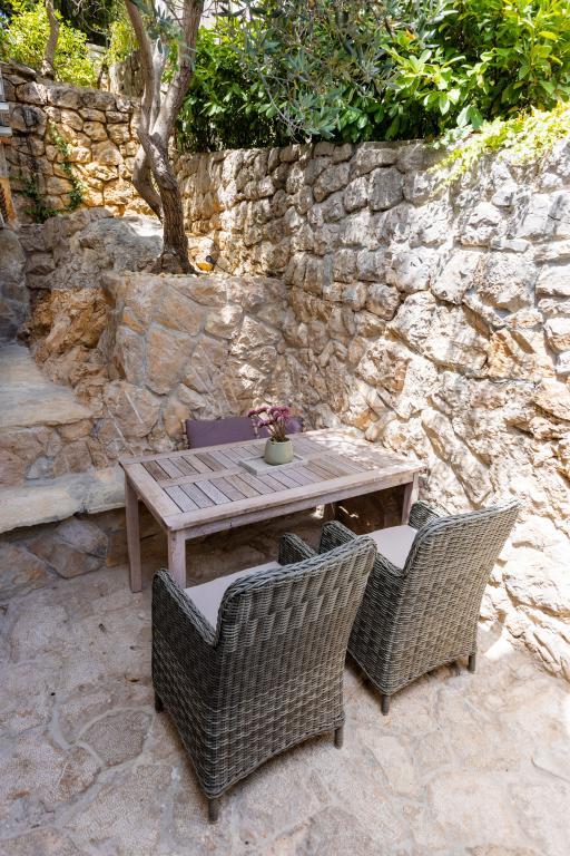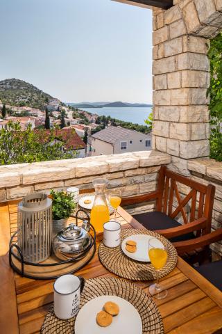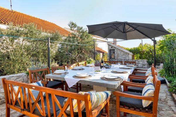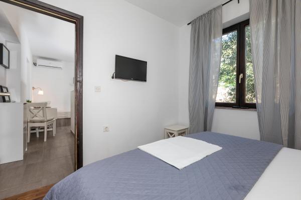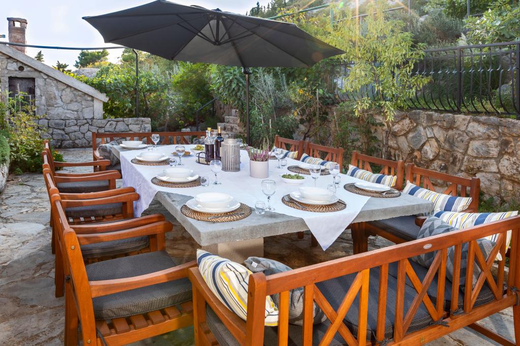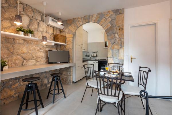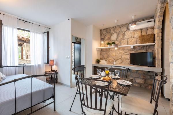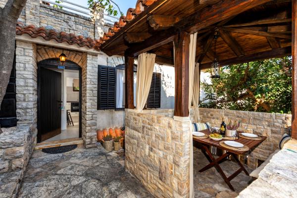 Sama hiša je fantastična. Kamen, obdan z oljkami, lovorjem, figami in cvetjem. Ima kotiček z žarom, medtem ko se celo kokoši skrivajo v zadnjem delu hiše. Apartma ima čudovit razgled in vse kar potrebujete za prijeten dopust. Prijazen gostitelj. Do plaže najhitreje pridete po stopnicah. Dve ali tri minute in ste na plaži. Je malo bolj navkreber. Na plaži se vedno najde kotiček v senci. V bližini je pekarna in manjša tržnica. Na počitnicah smo se imeli super.