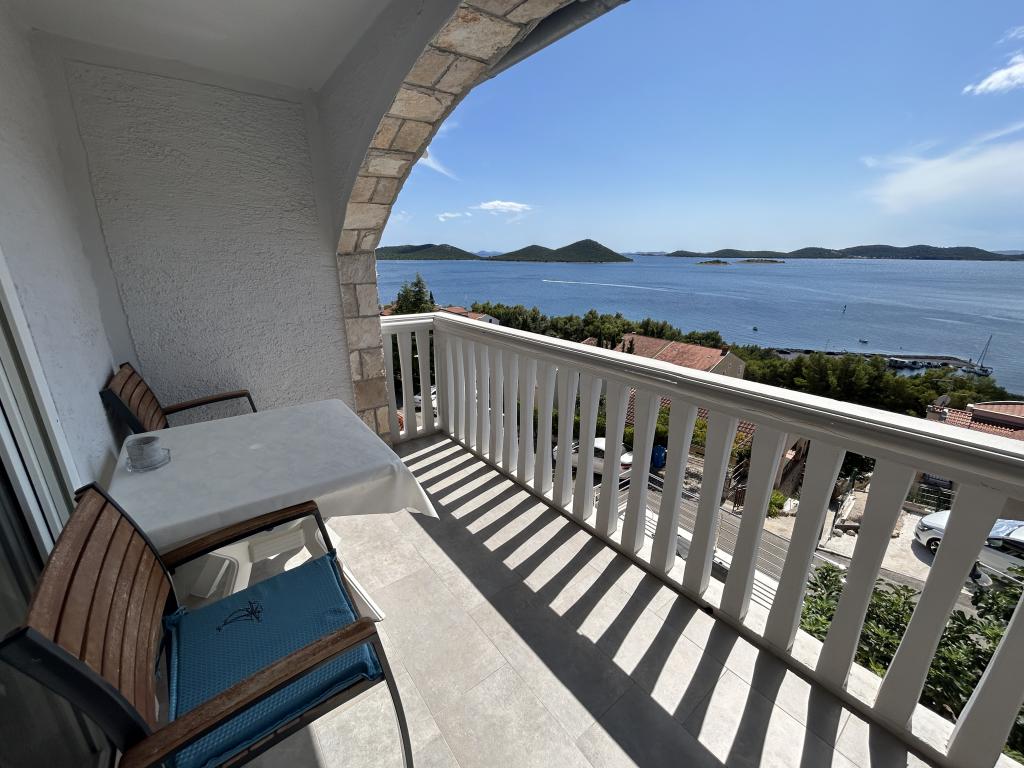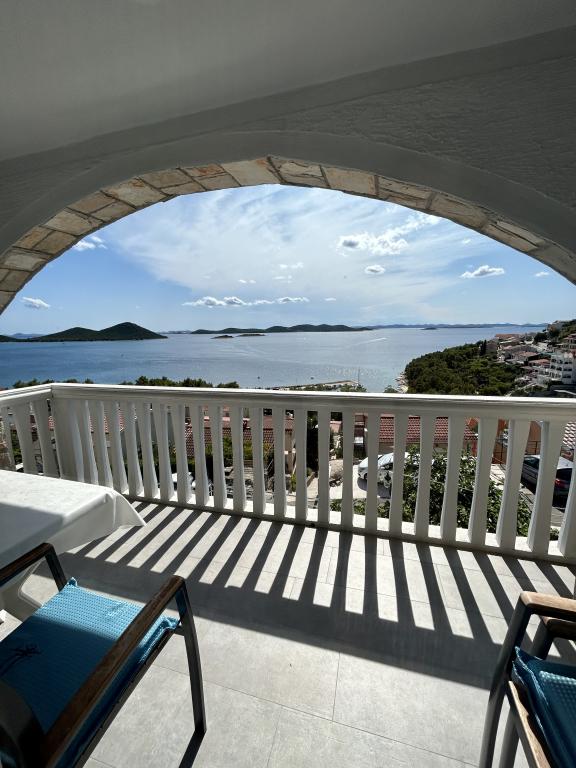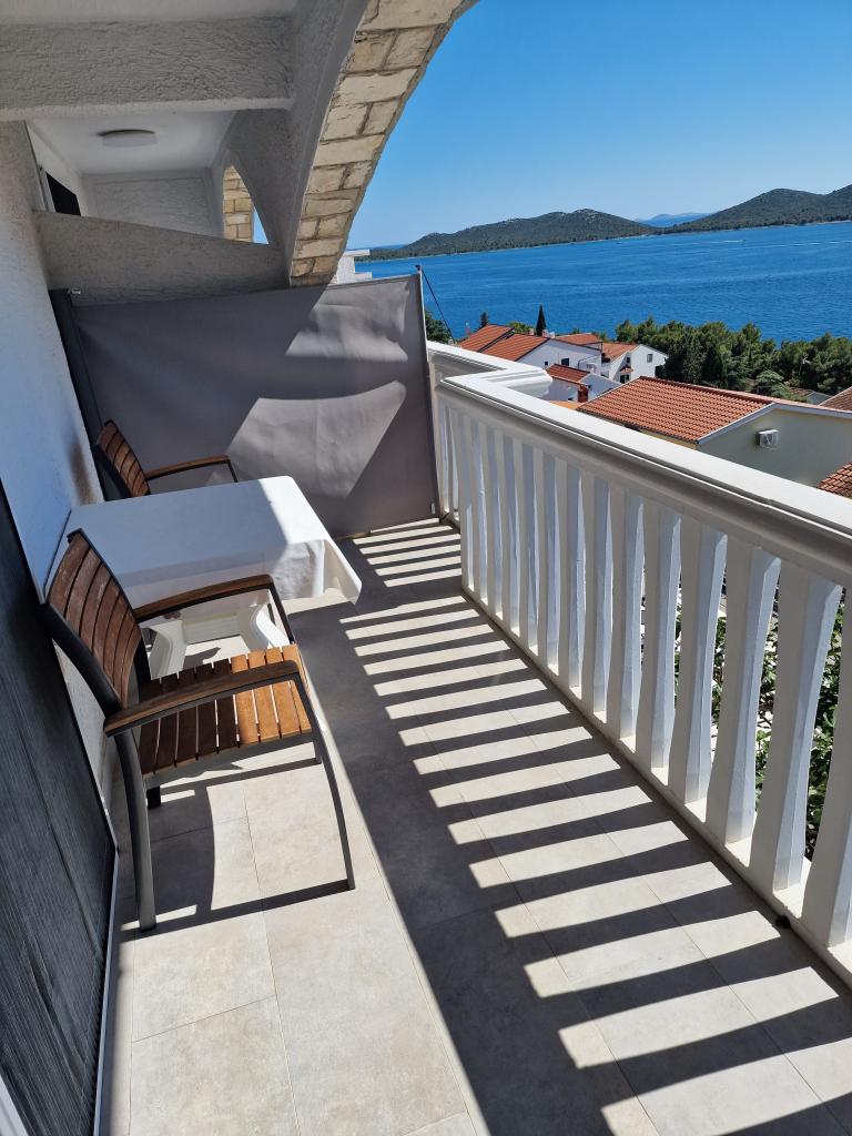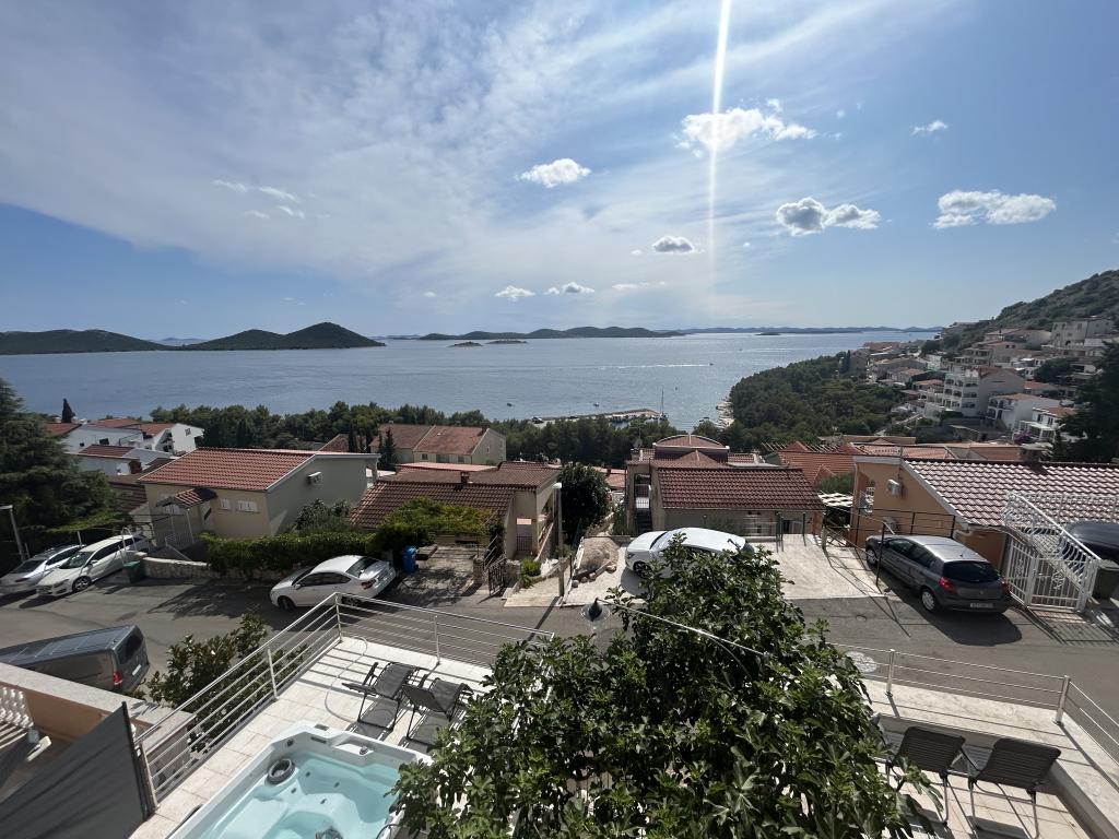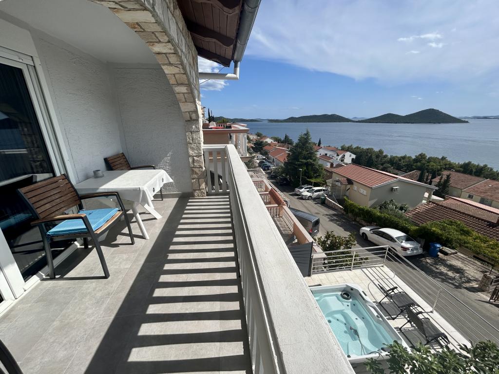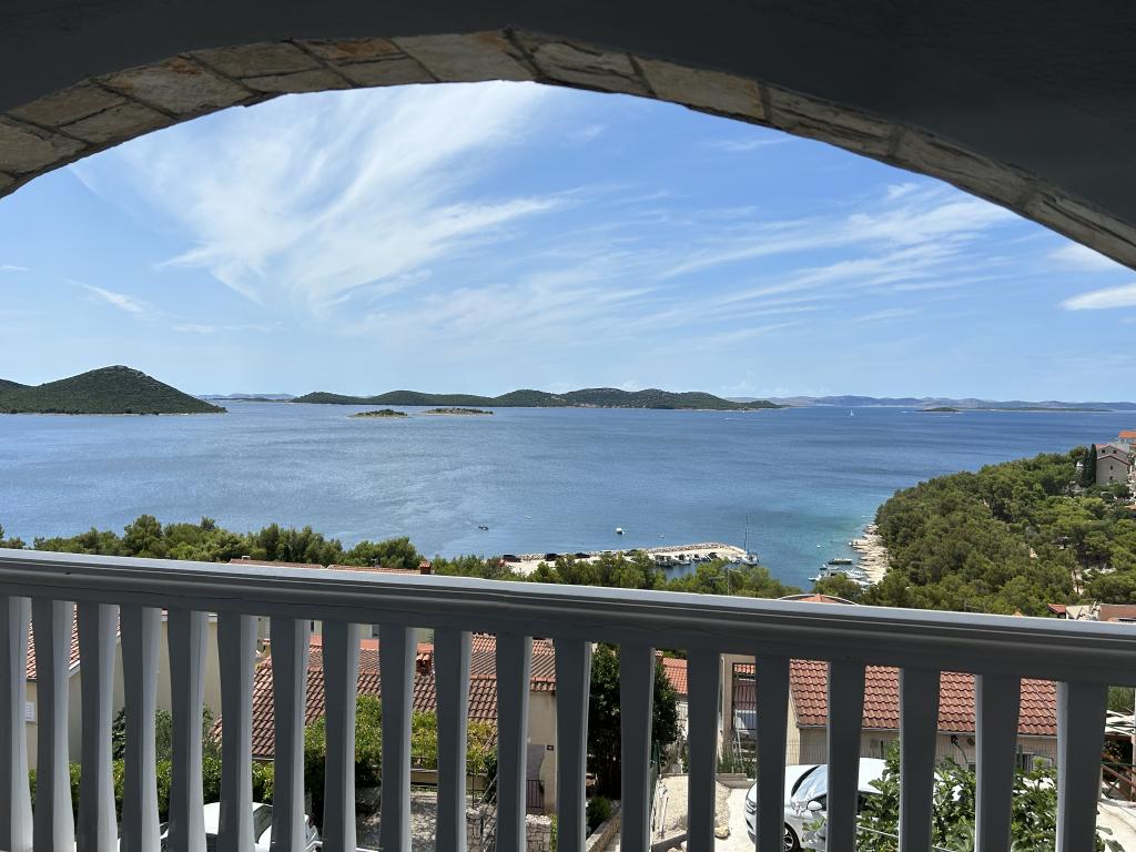 Apartma s čudovitim pogledom na morje in Kornate. Za stanovanjem je terasa z urejenim vrtom in skupnim žarom. Do plaže je 3 minute hoje. Ob obali je gost borov gozd s kamnito in prodnato (za otroke) plažo. Ob plaži se nahaja tudi beach bar ter restavracija-picerija in pekarna. Trgovina je oddaljena le 300 metrov, 5 minut hoje. Naravni park Vransko jezero je oddaljen 1500 m.