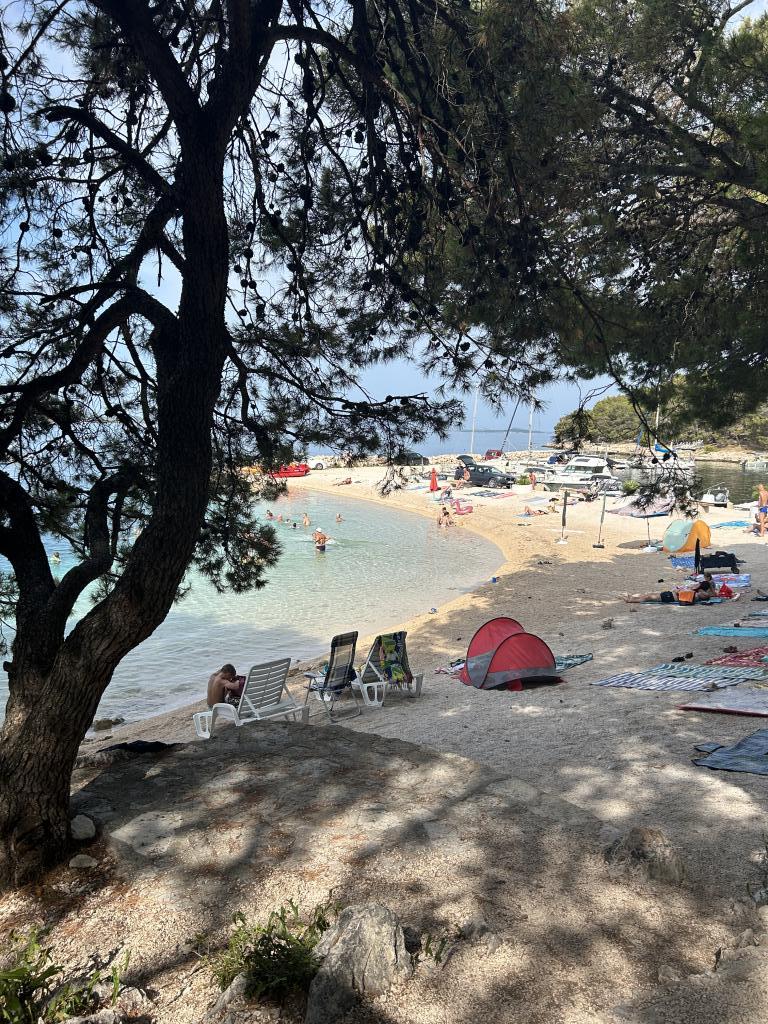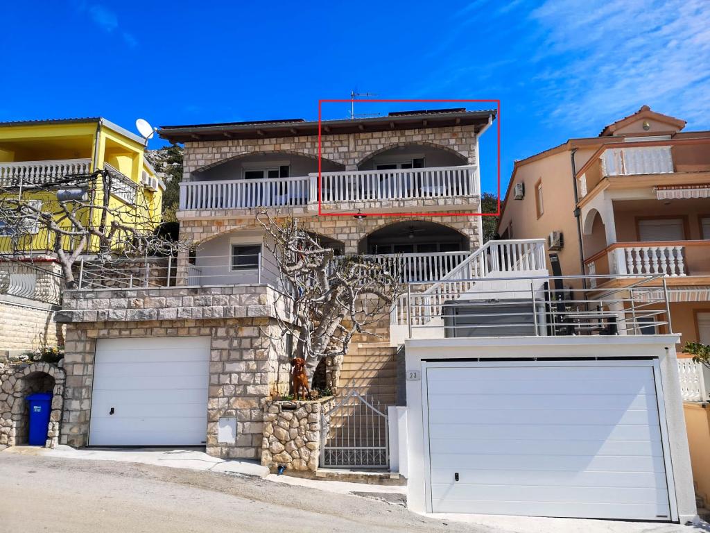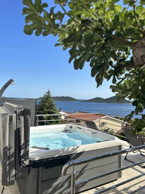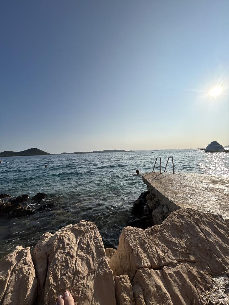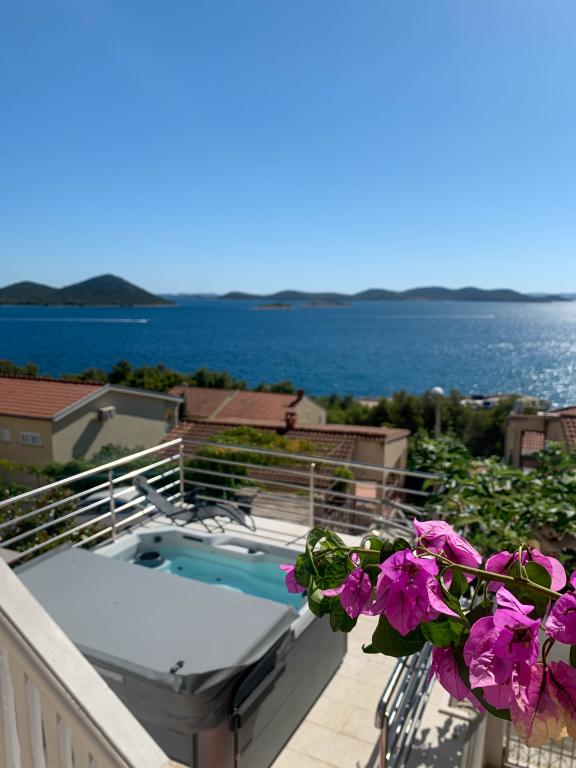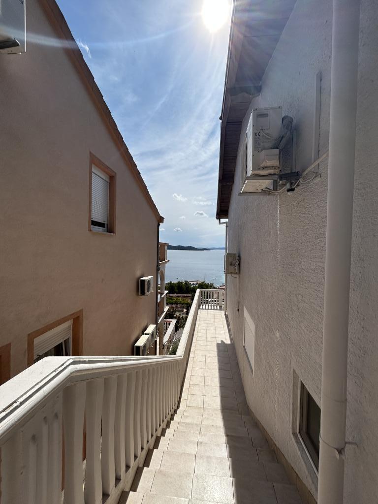 Apartma s čudovitim pogledom na morje in Kornate. Za stanovanjem je terasa z urejenim vrtom in skupnim žarom. Do plaže je 3 minute hoje. Ob obali je gost borov gozd s kamnito in prodnato (za otroke) plažo. Ob plaži se nahaja tudi beach bar ter restavracija-picerija in pekarna. Trgovina je oddaljena le 300 metrov, 5 minut hoje. Naravni park Vransko jezero je oddaljen 1500 m.