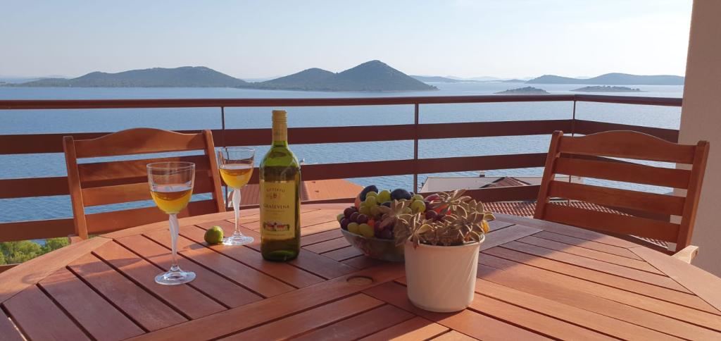 Miren kraj v majhni vasici 20 km od Vodic je izpolnil naša pričakovanja. Namestitev je bila prostorna, sobe čiste, gostitelji zelo prijazni. Parkiranje v garaži. V vasi je več trgovin za nakup hrane in splošnih potrebščin. S terase je bil neposreden pogled na morje in okoliške otoke.