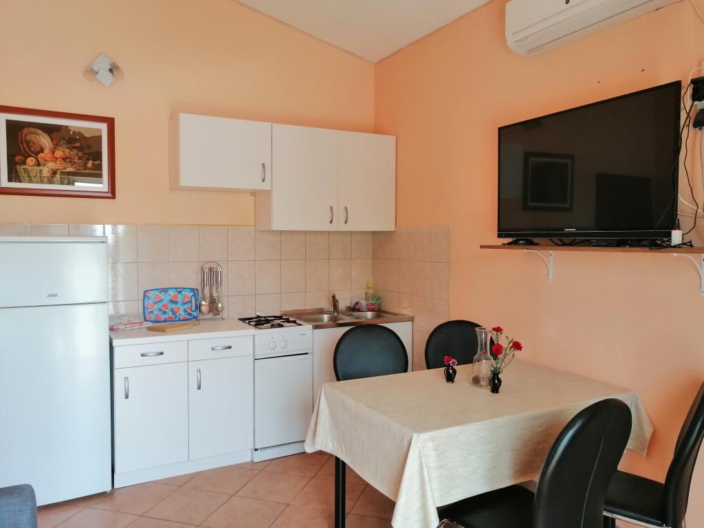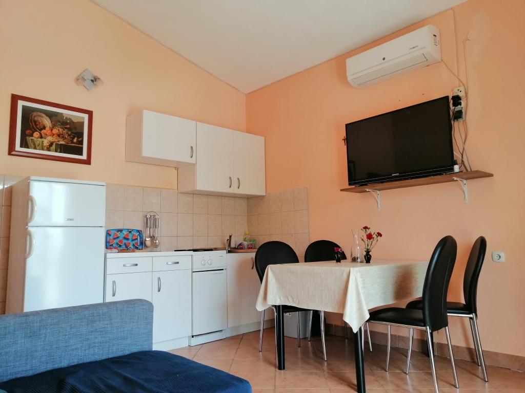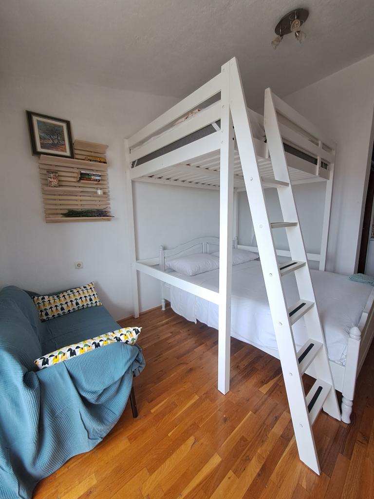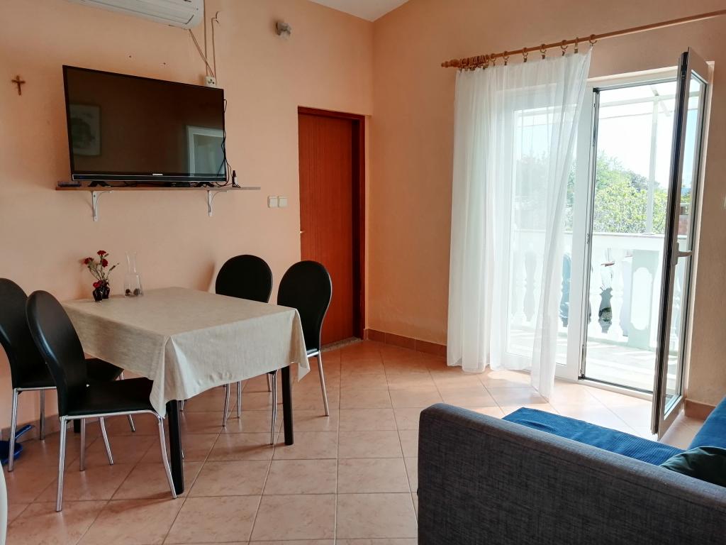 Hiša z apartmaji se nahaja v mirnem predelu Draga, stare vasi, in je zato idealna za družinsko namestitev. Nahaja se čez cesto od cerkve sv. Antona Padovanskega v Dragu. Apartmaji so popolnoma opremljeni, klimatizirani in imajo balkone s pogledom na morje. Oddaljenost od morja 1300 m, oddaljenost od naravnega parka Vransko jezero 1500 m (po Google maps). Na voljo hiša z letno kuhinjo in žarom. Dovolj prostora za parkiranje avtomobila.