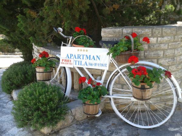 Apartmaji TILA se nahajajo v gostem borovem gozdu, prva vrsta do morja. V bližini sta dva gostinska objekta, možnost izbire prodnate, skalnate ali betonirane plaže, primerne za majhne otroke in neplavalce, osvetljena promenada ob morju v dolžini 1 km. Kakovostno opremljen vrt za prijetno bivanje v borovem gozdu, lounge bar pohištvo (miza s 6 stoli in možnostjo obedovanja na vrtu ter lounge kotiček za počitek v vročih poletnih dneh).