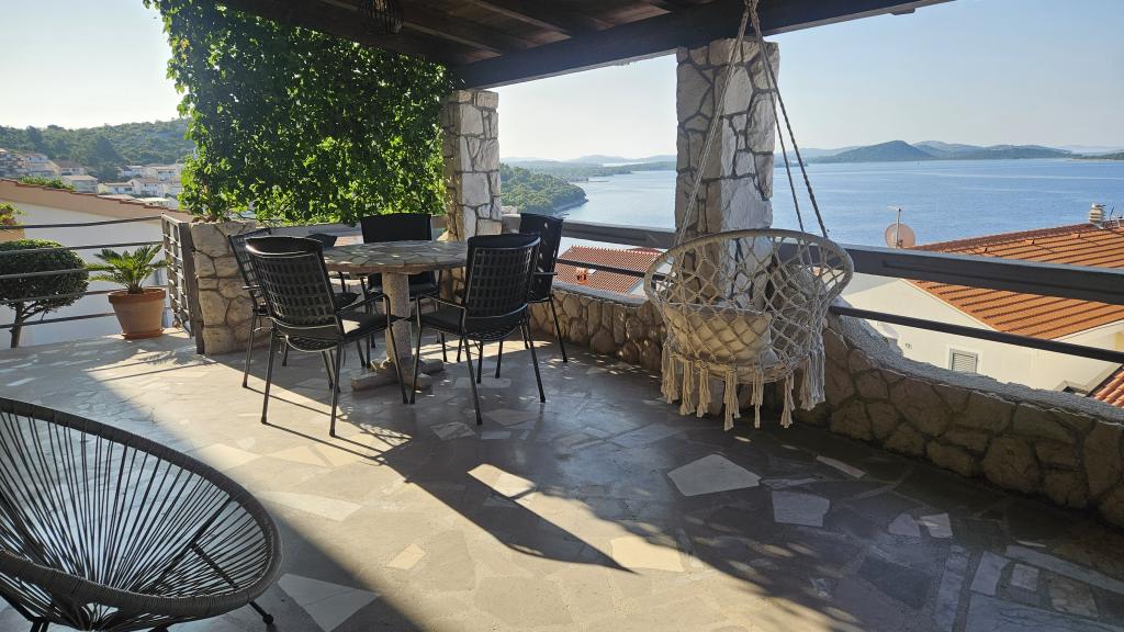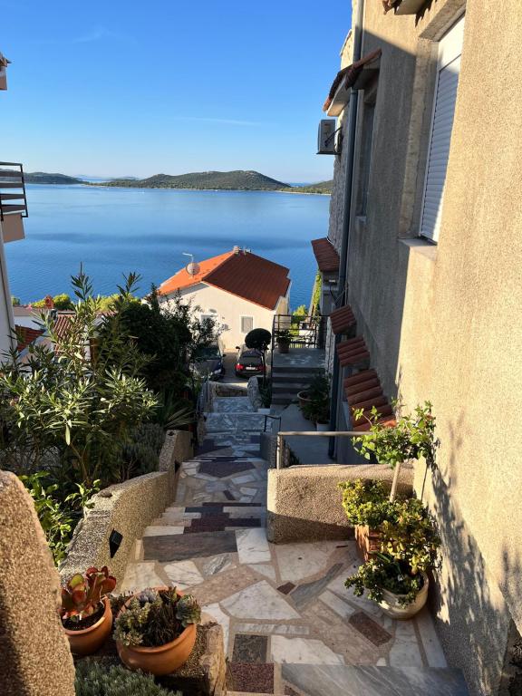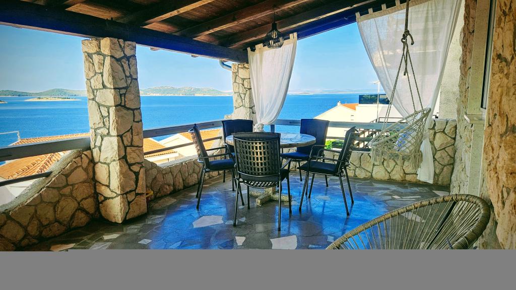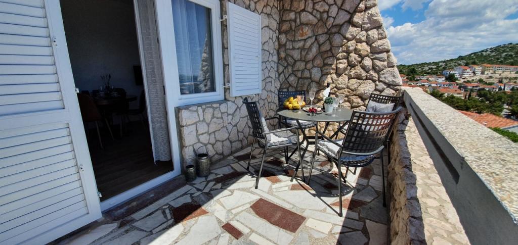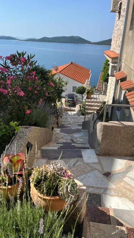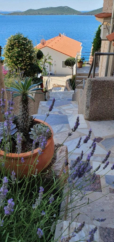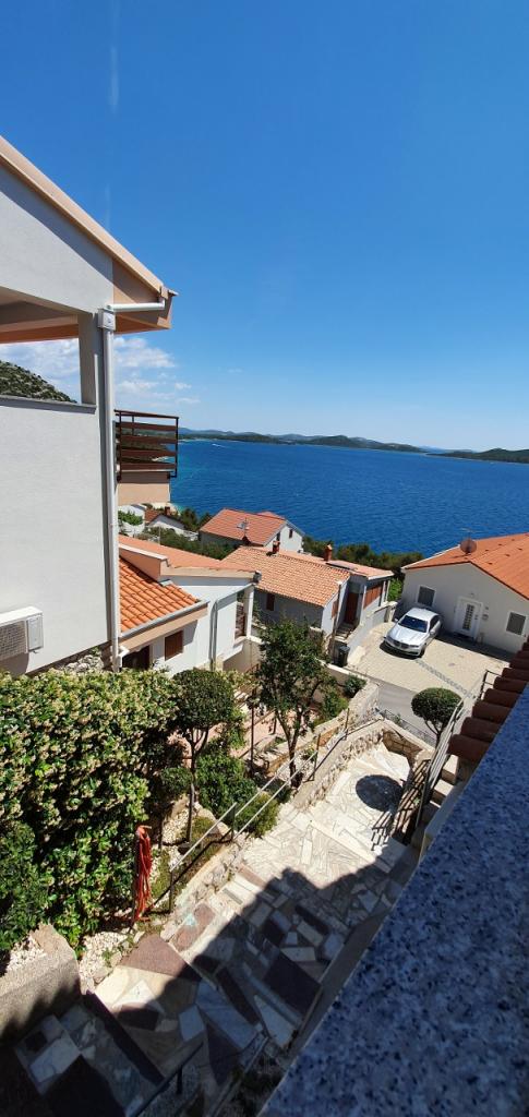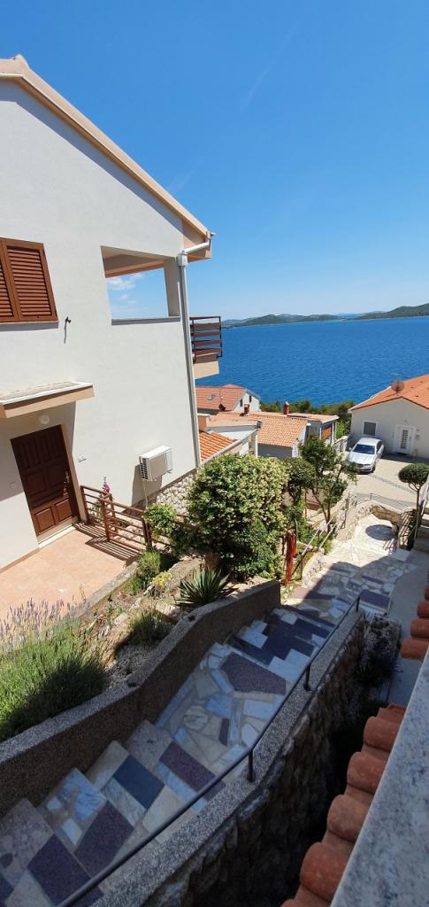 Popolnoma in moderno opremljeni apartmaji v mirnem predelu s čudovitim pogledom na morje, ki se razteza vse do Kornatov. Apartmaji se nahajajo v drugi vrsti do morja, tako da se morate le spustiti po stopnicah do morja, kjer so betonirane plaže, kristalno čisto morje in čudovita senca ter vonj po borovcih. V neposredni bližini pa je prodnata plaža, ki je pravi raj za otroke. Vsi naši apartmaji imajo varovano parkirišče, gostom pa je na voljo tudi skupni žar. Restavracije in kavarne na plaži so oddaljene 5 minut. , najbližja trgovina pa je oddaljena 10 minut hoje.