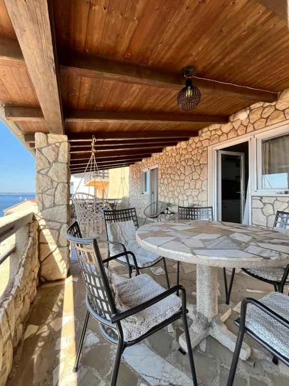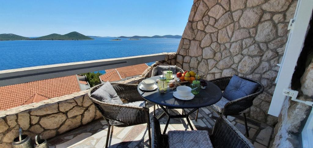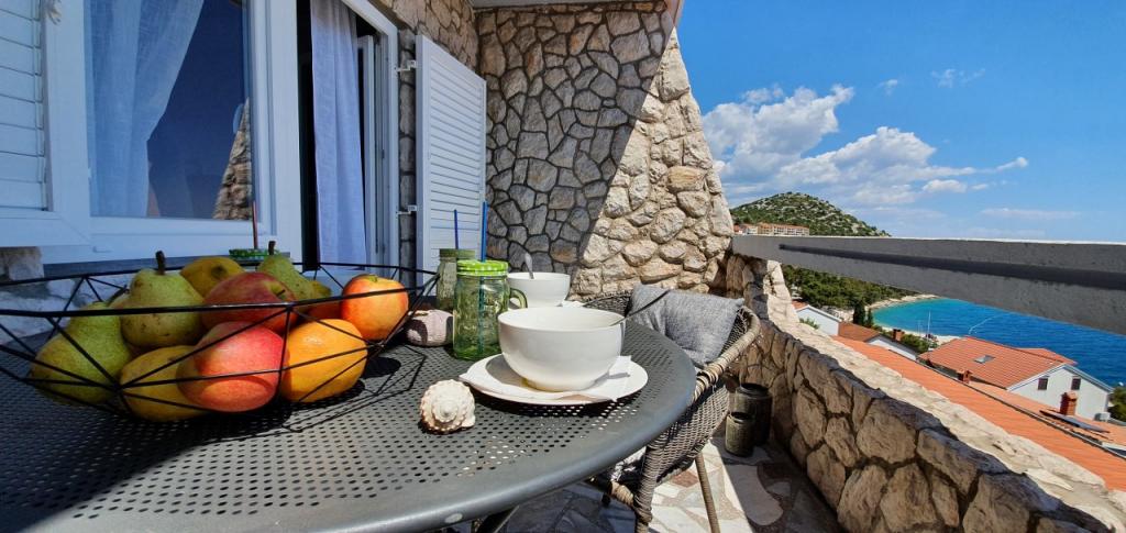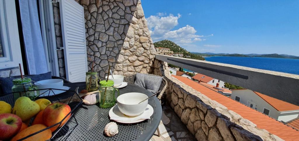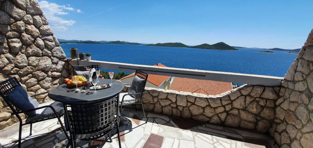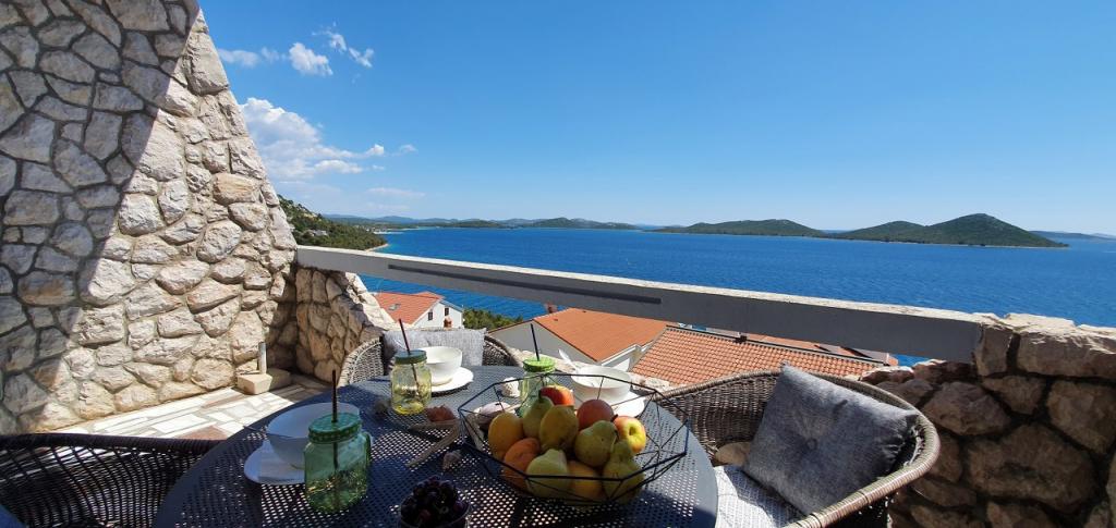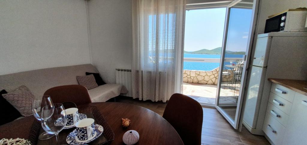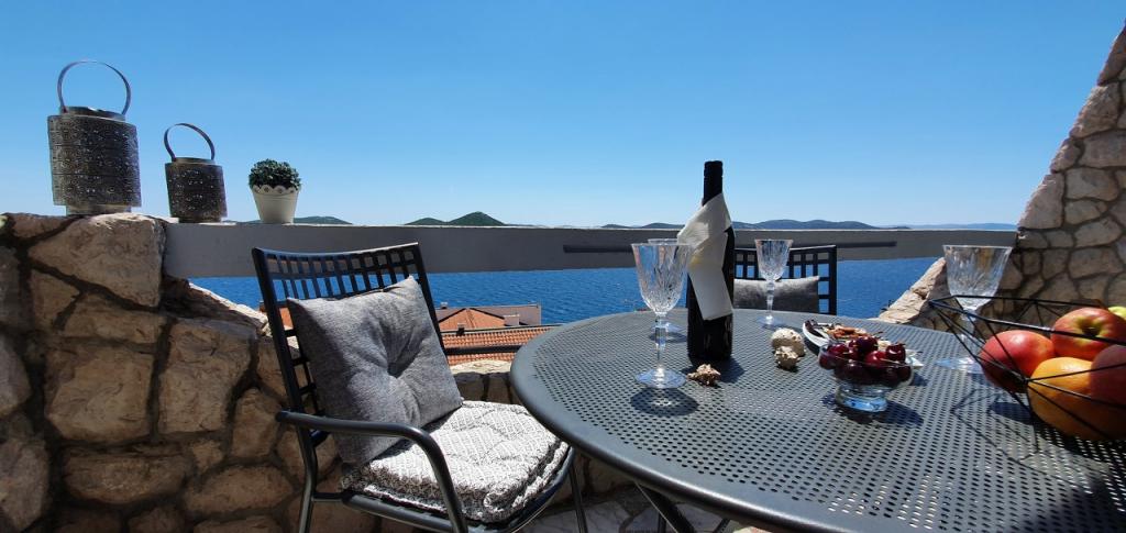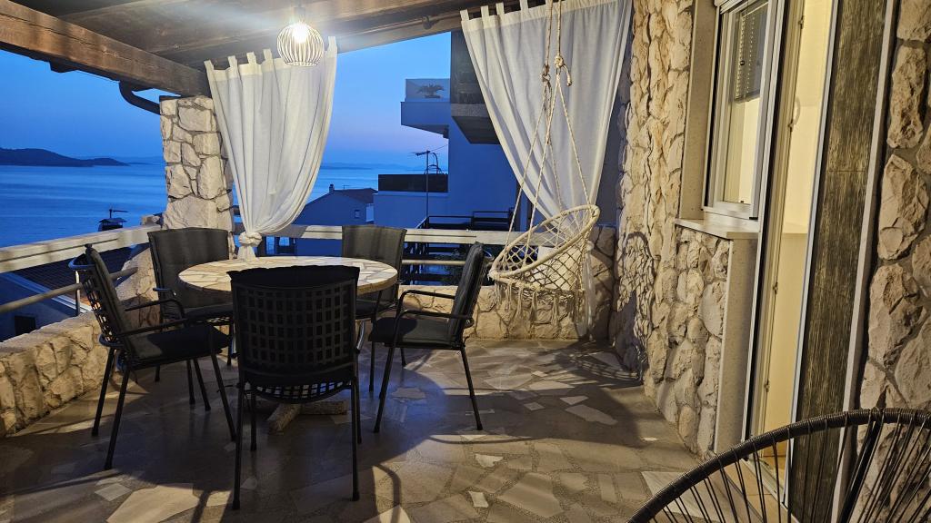 Popolnoma in moderno opremljeni apartmaji v mirnem predelu s čudovitim pogledom na morje, ki se razteza vse do Kornatov. Apartmaji se nahajajo v drugi vrsti do morja, tako da se morate le spustiti po stopnicah do morja, kjer so betonirane plaže, kristalno čisto morje in čudovita senca ter vonj po borovcih. V neposredni bližini pa je prodnata plaža, ki je pravi raj za otroke. Vsi naši apartmaji imajo varovano parkirišče, gostom pa je na voljo tudi skupni žar. Restavracije in kavarne na plaži so oddaljene 5 minut. , najbližja trgovina pa je oddaljena 10 minut hoje.