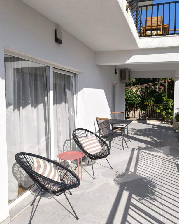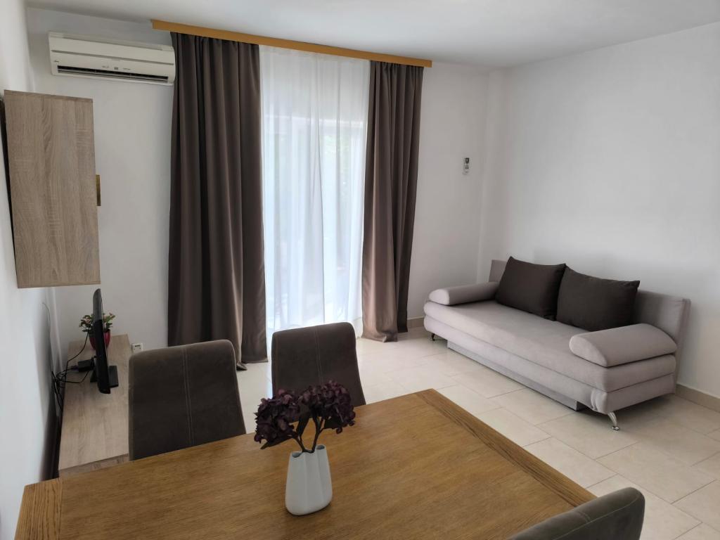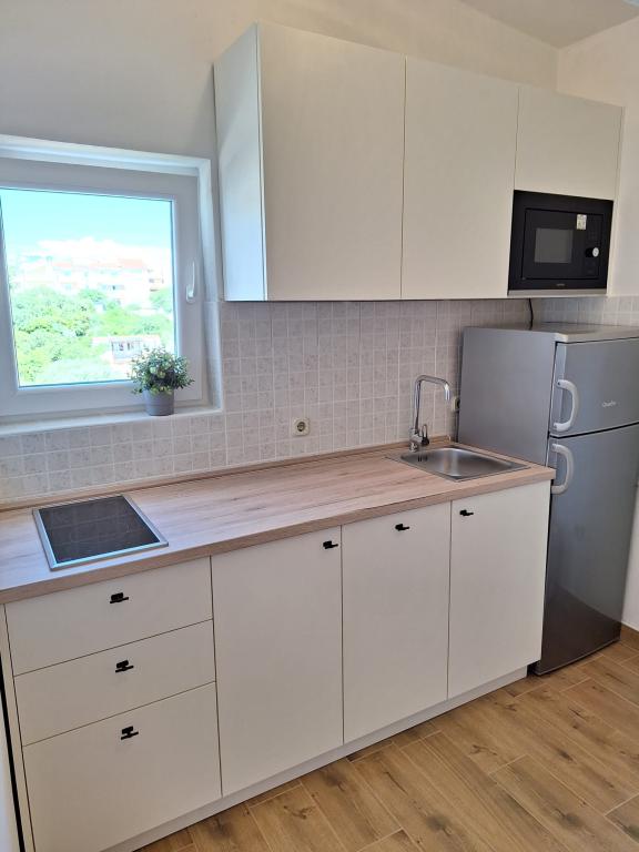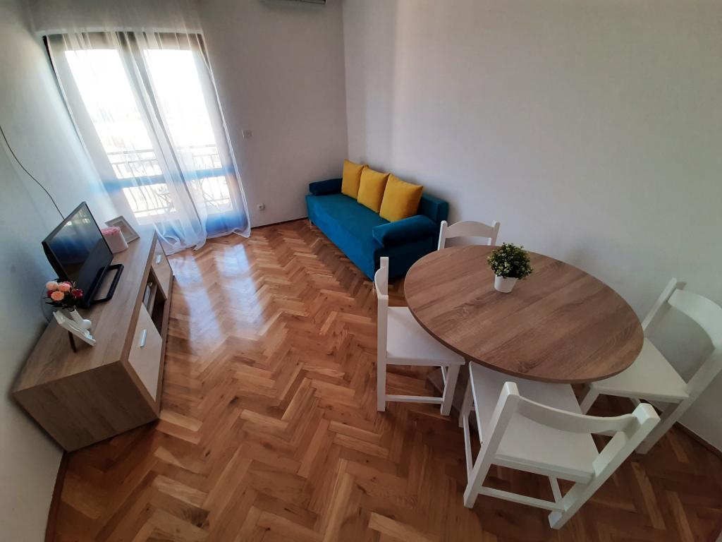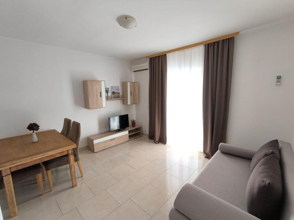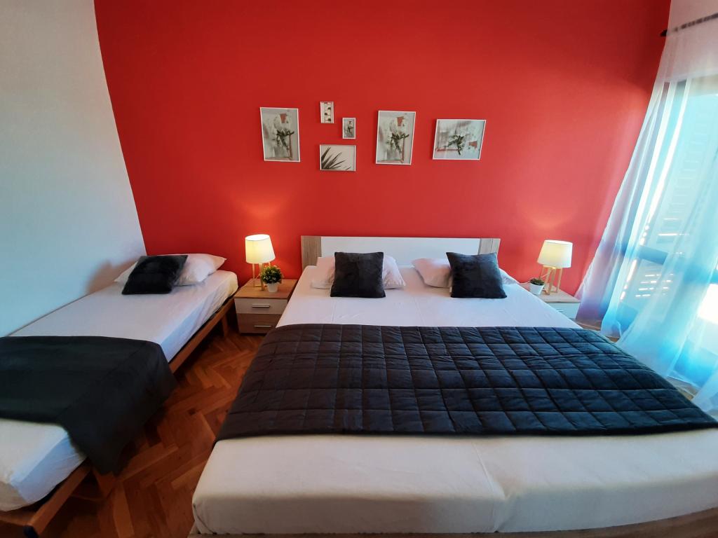 Popolnoma opremljeni apartmaji (štedilnik, hladilnik, jedilni pribor in kuhanje) in satelitsko televizijo, in parkiranje neposredno ob objektu v Drage, ki se nahaja 200 metrov od plaže. Apartmaji so sestavljeni iz ene ali dve spalnici, kopalnico z WC-jem, tušem, kuhinjo, jedilnico in teraso s pogledom na morje in otoke lepi rivieri. Vse potrebne dobrine (restavracije, trgovine, pekarne, kavarne, ..) je le 2 minuti hoje od hiše. Zapri Vransko jezero in Kornati prispevati Drage idealen kraj za preživeti počitnice.