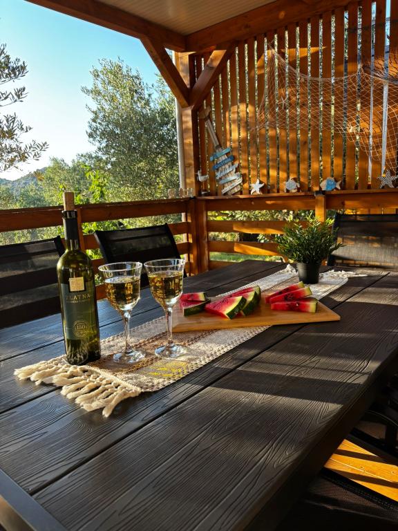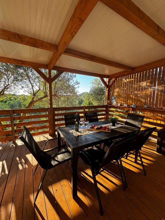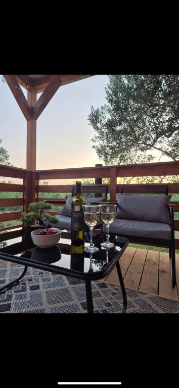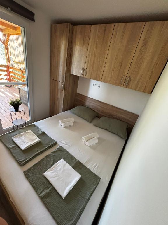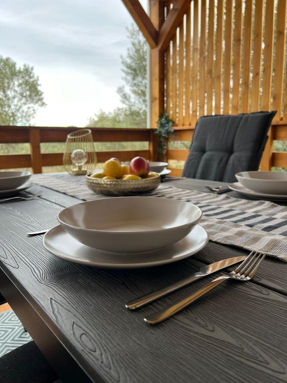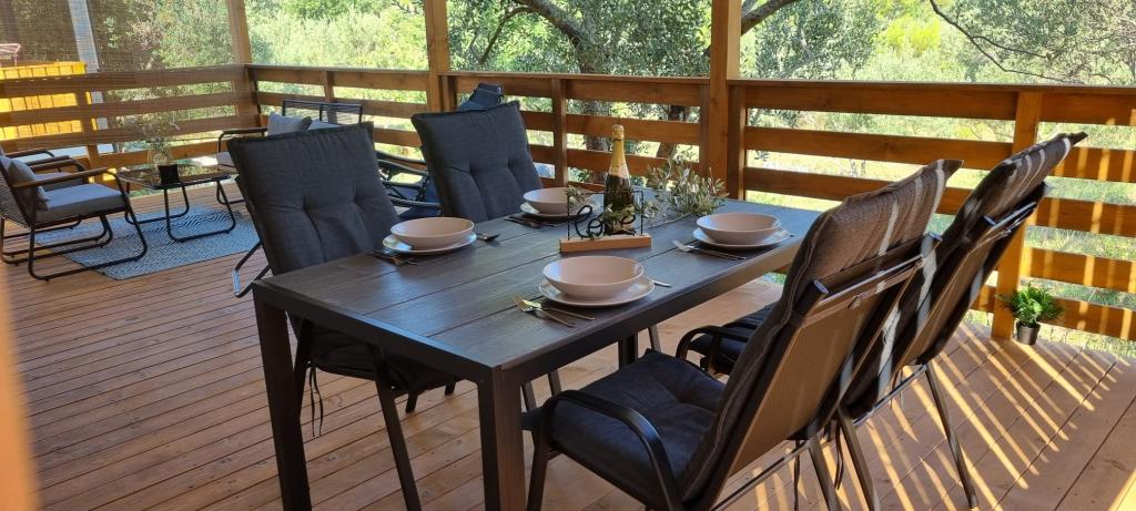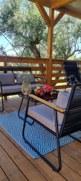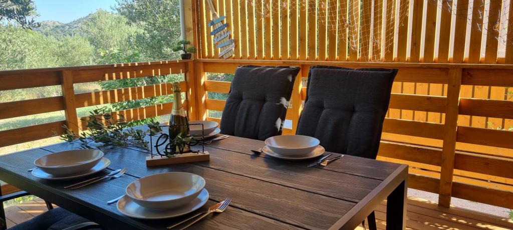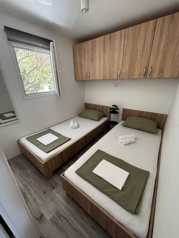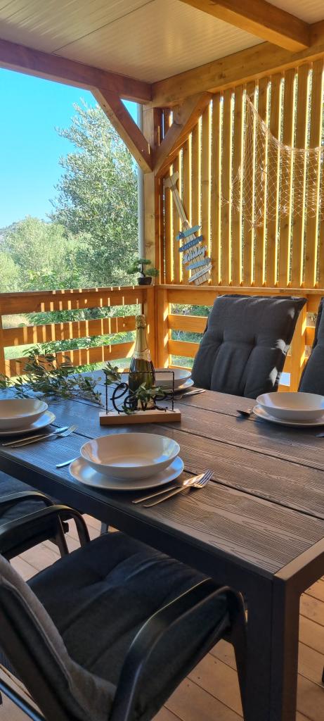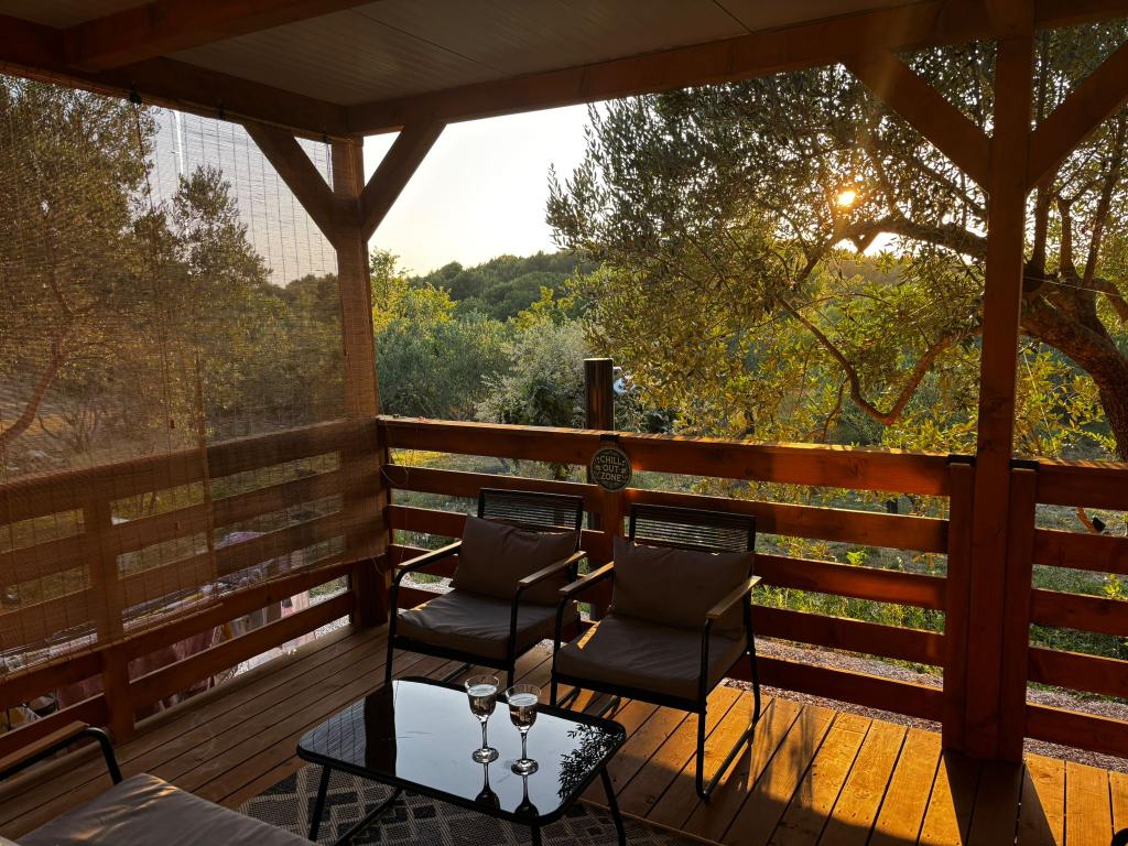 Olive Nest je mobilna hišica, ki je na voljo od leta 2024. Hiša je popolnoma opremljena, modernega dizajna, meri 32 m2 z zunanjo pokrito teraso velikosti 32 m2. Hiša je opremljena s spalnico z zakonsko posteljo in sobo z dvema enojnima posteljama, v kateri je tudi raztegljiva postelja za dve osebi. V notranjosti namestitve se nahaja kuhinja z jedilnico in kopalnica (WC, tuš, umivalnik). Pokrita terasa ponuja možnost celodnevnega bivanja in sprostitve. Na terasi je zunanja jedilna miza. Pridite in doživite počitnice v osrčju Dalmacije! ️- 1 soba (zakonska postelja) - 2 sobi (dve enojni postelji) - raztegljiva postelja za dve osebi - prenosna otroška posteljica za otroka do 2 let. -️ 1 kopalnica (tuš in umivalnik) ️- velika terasa 32m2, z mizo za 6 oseb in sedežno garnituro ️- Wi-Fi ️- TV ️- pomivalni stroj ️- električni žar - zunanji tuš ️- opremljena kuhinja - brezplačno parkiranje - sesalnik - sušilec za lase - pralni stroj