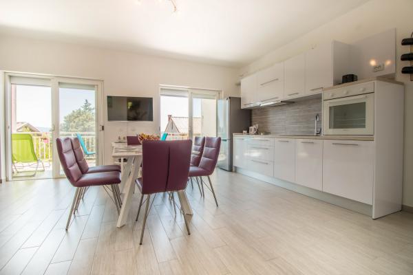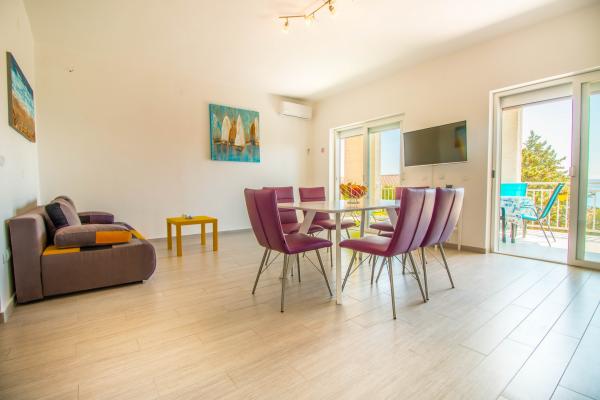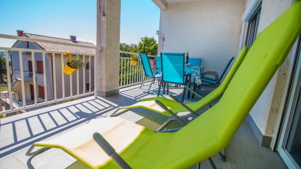 Lahko se maksimalno okrepčate s plavanjem in sončenjem, ker ste blizu plaže in na vas je, da se odločite, katera plaža bo izbrana za prodnate, peščene, skalnate stopnice. Apartma je prostoren in popolnoma opremljen, kuhinja ima vse (hladilnik, pečica, pralni stroj, toaster ...), jedilno mizo v apartmaju in na terasi, žar, brezplačen brezžični internet, satelitsko televizijo, tablični računalnik, sef, jaslice ... Luksuzni apartma Stella ima 100m2, sestavljen je iz dveh spalnic, hodnika, velike dnevne sobe, kuhinje, kopalnice in velike terase (25m2) s pogledom na morje. Vse sobe in dnevna soba so klimatizirane. Majhne razdalje do privlačnih turističnih središč Crikvenica 3 km (30 min hoje), Otok Krk 13 km, Letališče Rijeka 16.