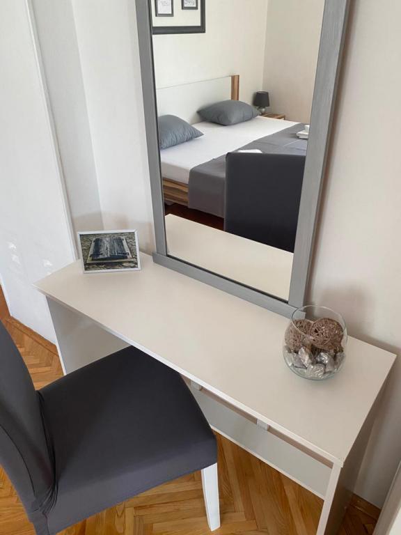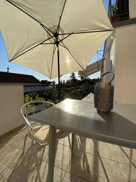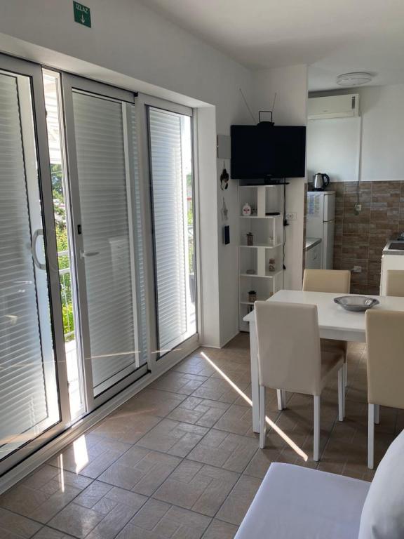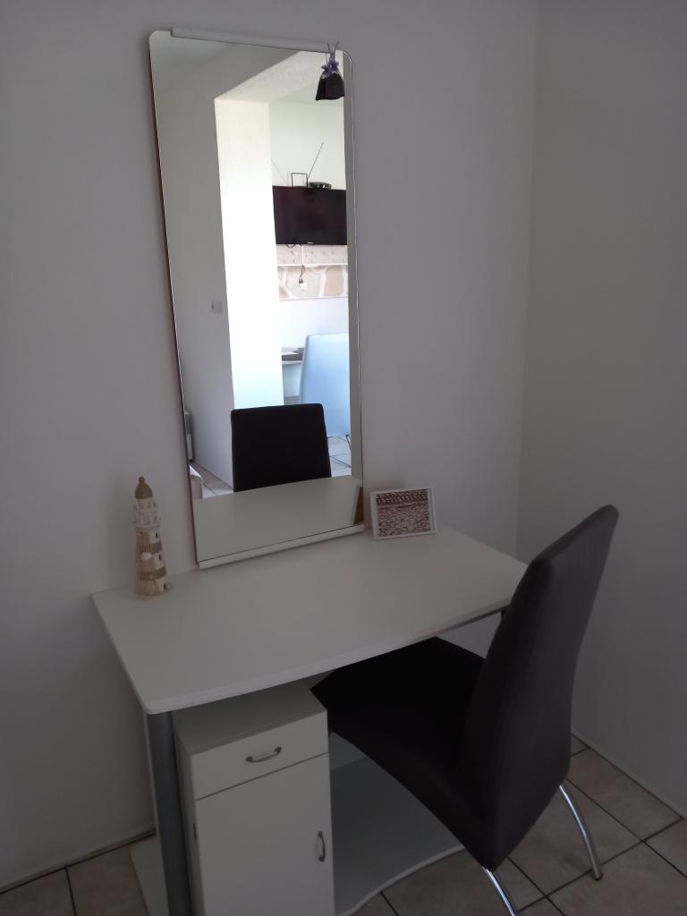 Bili smo nastanjeni v app za 4 osebe. Apartma je na odlični sončni legi. Izredno čisto in lepo urejeno. Vzdrževano in s smiselnimi detajli popestreno za dobro počutje. V apartmaju je vse kar človek potrebuje in za 4 osebe več kot dovolj prostora. Velika terasa s pogledom na morje popestri večere. Do plaže 200 korakov (smo jih šteli). Lokali, restavracije, trgovina...minutka ali dve hoje od apartmaja. Lastnik prijazen in ustrežljiv. Vsekakor drugo leto še pridemo.