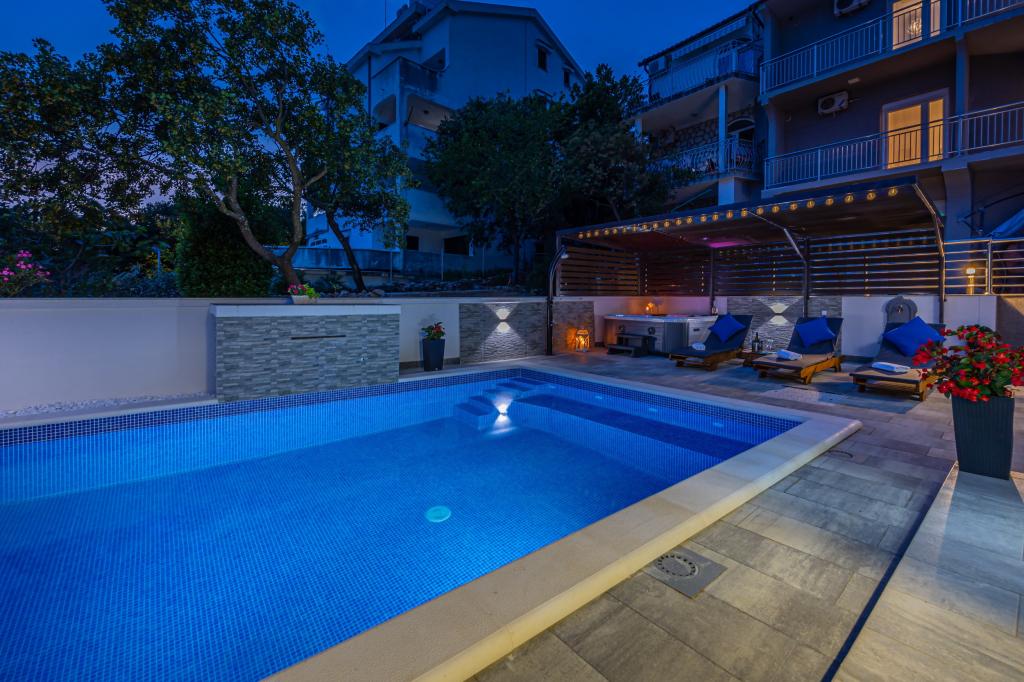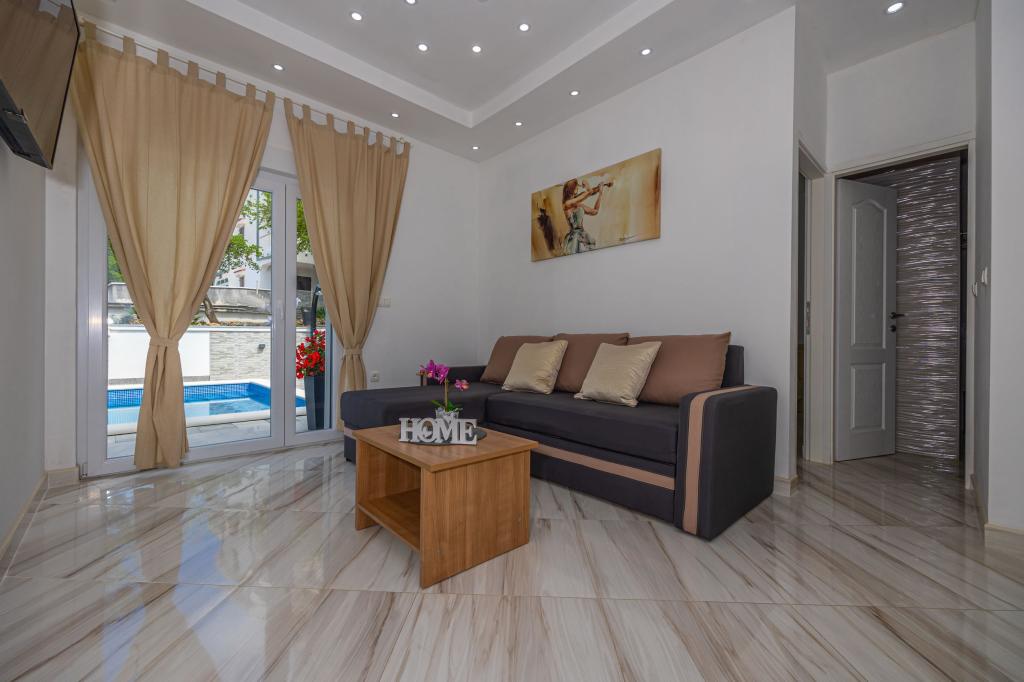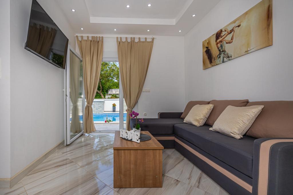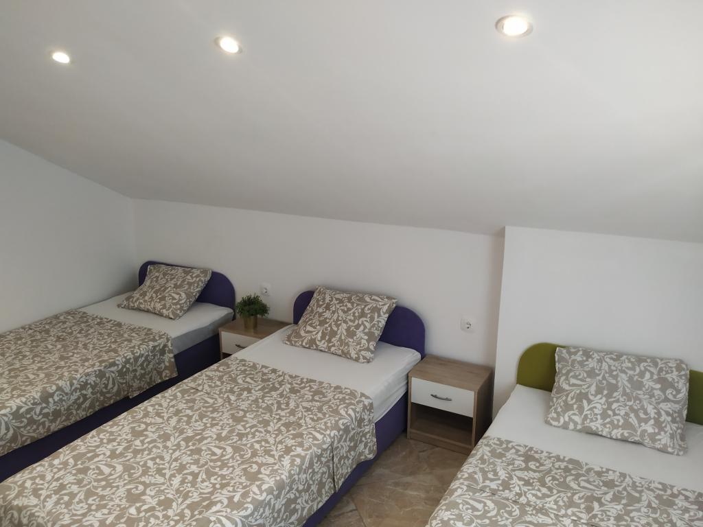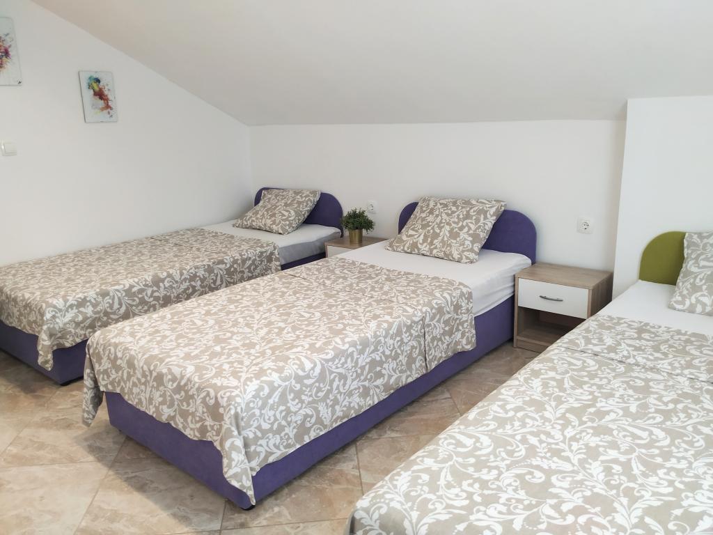 Družinska hiša z apartmaji se nahaja v Dramlju, mirnem delu riviere Crikvenica, le 400 metrov od promenade ob morju, ki povezuje Dramalj s Crikvenico. Apartmaji A2 + 2 obsegajo opremljeno kuhinjo z jedilnico, kopalnico, 2 spalnici, eno z zakonsko posteljo, drugo pa z ležiščem za 2 osebi in balkon s pogledom na morje. Apartmaji A3 obsegajo opremljeno kuhinjo z jedilnico, kopalnico, 1 spalnico z zakonsko posteljo in enojno posteljo ter balkon s pogledom na morje. Apartma A5 je sestavljen iz opremljene kuhinje z dnevno sobo, 2 spalnici, ena z zakonsko posteljo in druga s 3 enojnimi posteljami. Stanovanje ima prostorno teraso velikosti 20m2 z neposrednim pogledom na morje. Vsi apartmaji imajo klimatsko napravo, televizijo in brezžični internet, zraven hiše je zasebno parkirišče za goste, na dvorišču pa žar. .