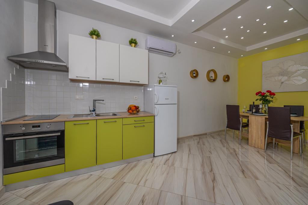 Preberite več Namestitvene enoteZa rezervacijo apartmaja je potrebno predplačilo v višini 30% dogovorjene cene nastanitve. Po akontaciji se cena nastanitve zniža za znesek akontacije. Idealen čas za vstop v stanovanje od 14h. , in čas zapuščanja stanovanja do 10. ure. Cena vključuje uporabo klimatske naprave, turistično takso, brezžični internet Wi-Fi, čiščenje apartmaja. Za bivanja, krajša od 4 dni, se cena nastanitve zviša za 30%.