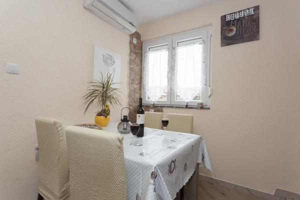 Zelo prijetno bivanje v stanovanju, TV, odlično vzdušje, kar je idealno za družine in pare. Čistoča na najvišji ravni. Zasebno terasa z žarom, in skupno igrišče za otroke. Parkiranje v dvorišču, obdani z ograjo. Dostop do morja je nekaj 5-10 minut peš. Lastniki zelo prijazni gostitelji. Priporočamo vam, da jih obiščete