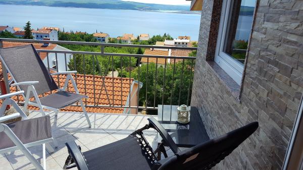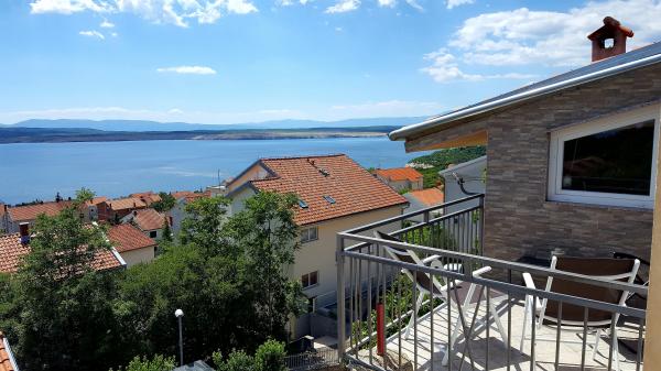 Dramalj je majhno mesto, kjer lahko svoje počitnice izvajanje miru in tiho, vendar ste v središču razvoja je, Mestna občinaCrikvenica, ki je v poletnih mesecih je polna turistov in dogodkov, od Dramalj je le 3 km.Naš mansardno stanovanje je 55m2, sestavljen iz dnevne sobe s kavčem, SAT TV, radio in klimatsko uređajom.Kuhinja z jedilnico opremljena s hladilnikom in zamrzovalnikom, plinski štedilnik / elektrika, kava in druge potrebe. Dve spalnici z zakonsko posteljo in velike ormarima.Balkon nudi pogled na morje, otok Krk in Kvarner zaljev.Kupaona opremljena s tušem. Pritličje apartma ima 48m2, dve spalnici, ena z zakonsko posteljo in TV s hrvaščino programi in drugi kavč. Kopalnica s tuš kabino. Kuhinja v celoti vgrajen v jedilnici s satelitsko televizijo. United terasa.Udaljenost od plaže 700 m