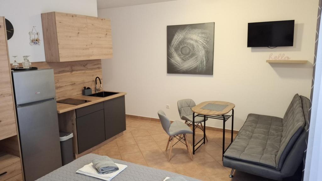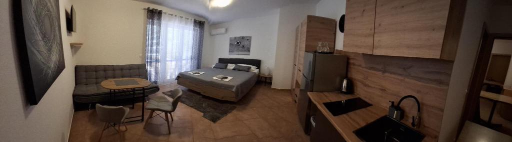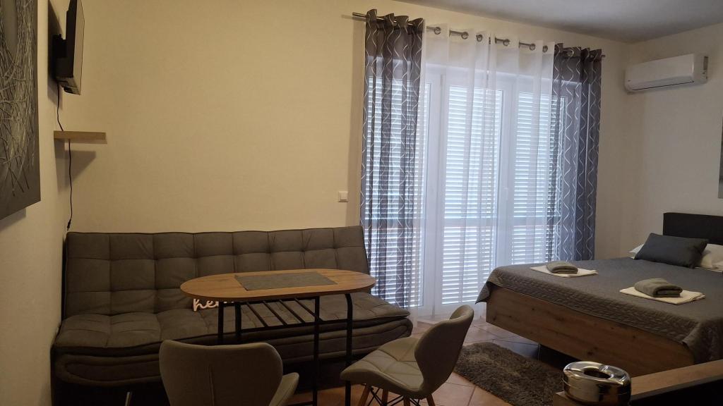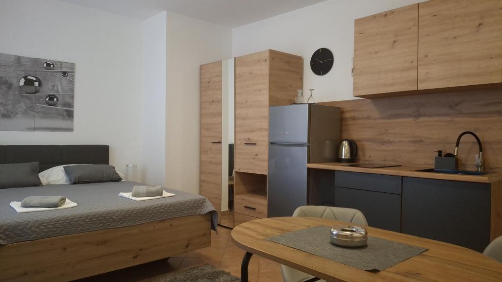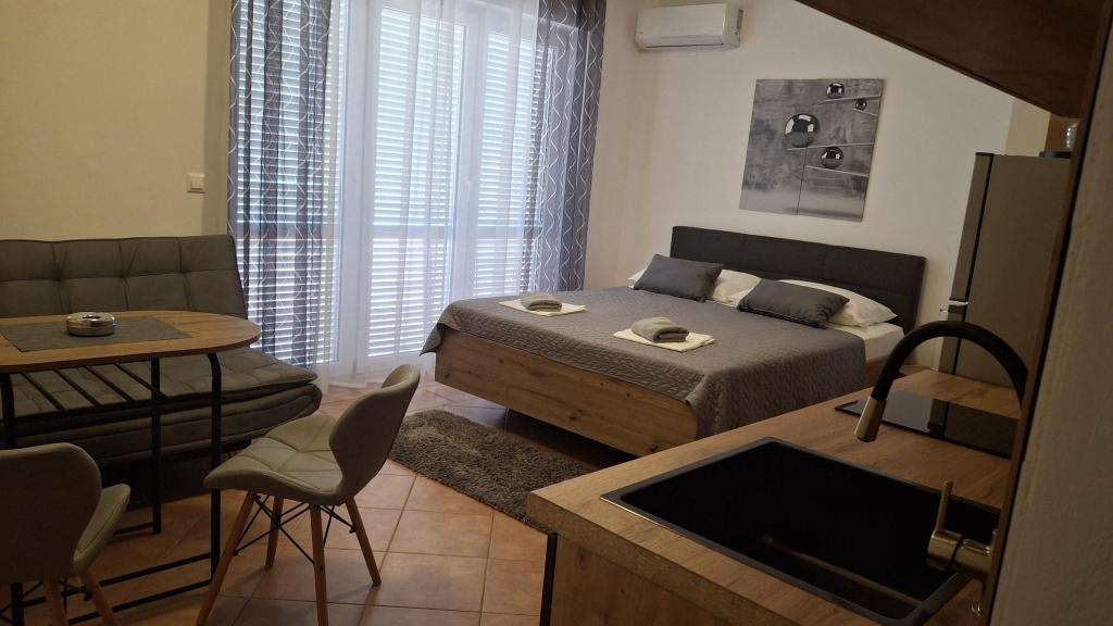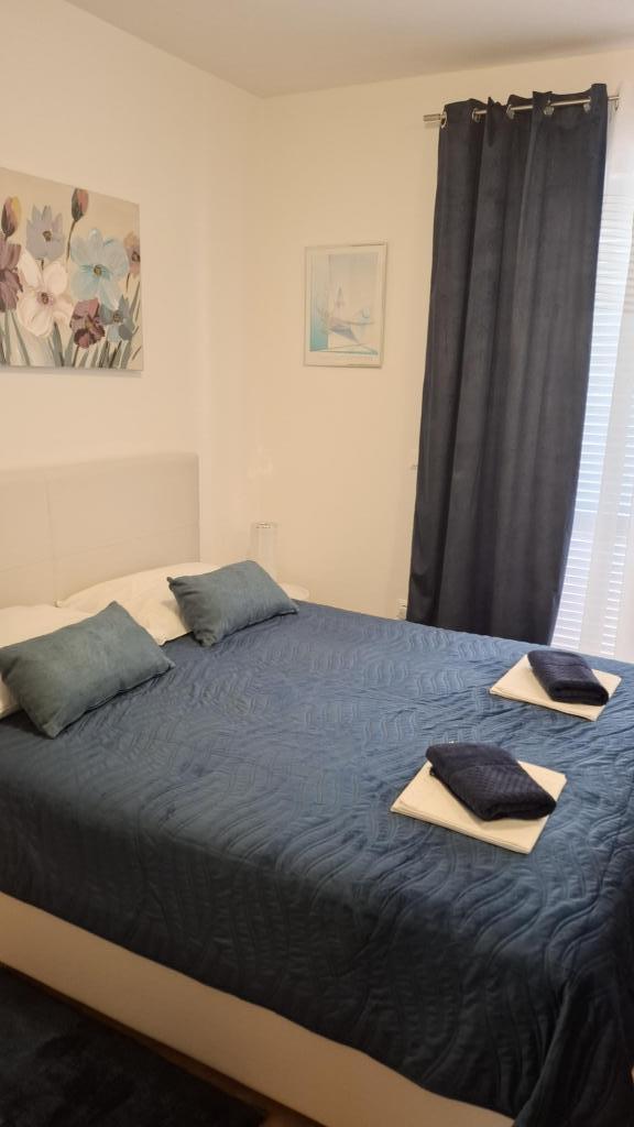 Za oddih od vsakdanjika in razgibanega življenja vam nudimo garsonjere ali sobe po vaši izbiri v novi družinski stavbi, s pogledom na morje. Vaša namestitev se nahaja 4-5 minut vožnje do mesta, plaža pa 3-4 minute. Apartmaji imajo možnost uporabe zunanjega žara in so v bližini trgovskega centra Duga Mall in Lidl. Pri nas imate ves čas zagotovljeno parkirišče, ki je največji problem vsake turistične destinacije. Možnost uporabe klimatske naprave z doplačilom 5 EUR na dan. Vaš prijeten dopust v našem objektu je naša največja naloga.