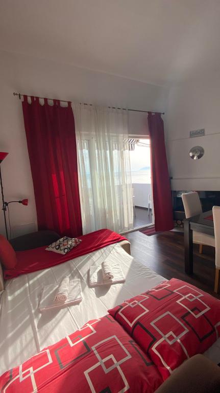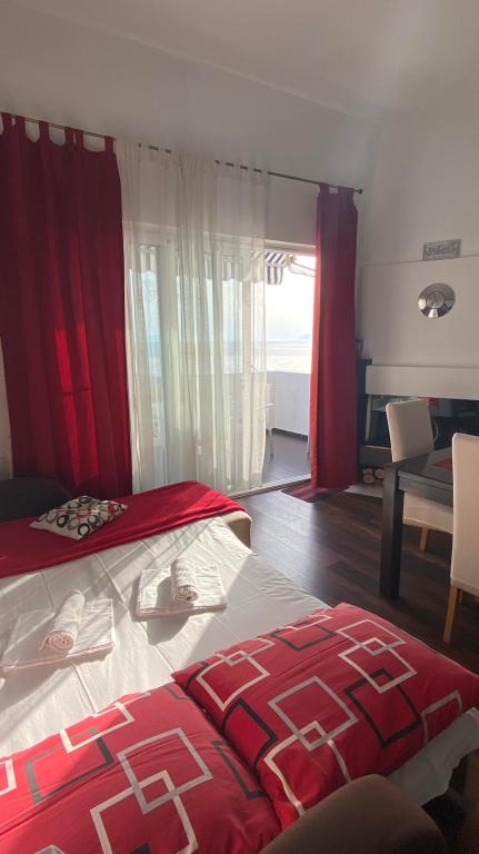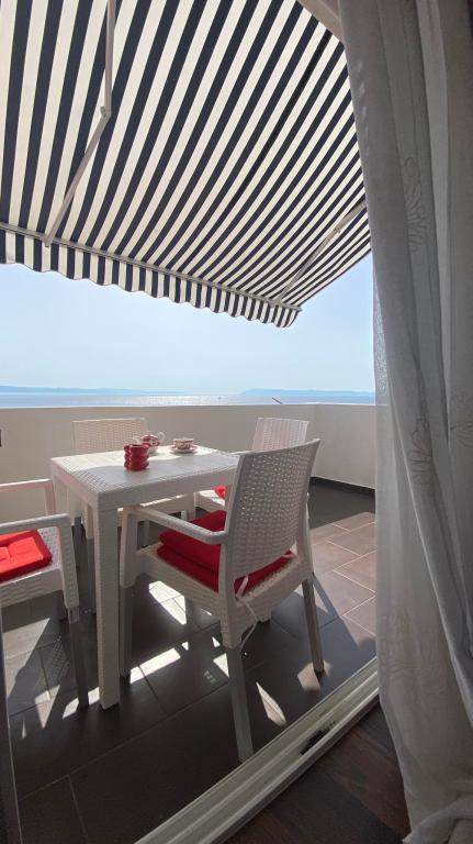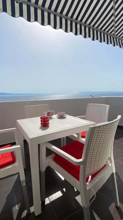 Apartmaji se nahajajo v prvem nadstropju, imajo pogled na morje in parkirišče pred objektom, nahajajo se v samem centru Drašnic.