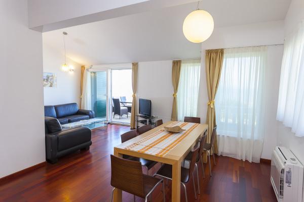 Namestitev lahko samo priporočam, apartma je bil čist, okusno opremljen. Čudovit pogled s terase. Ob prihodu je bila za dobrodošlico torta, sadje in vino. Ob odhodu nas je prijetno presenetilo darilo gospe Katice, ki je zelo prijazna in je bila na voljo v času našega bivanja. Prednost stanovanja je tudi parkirišče pred hišo. Hvala