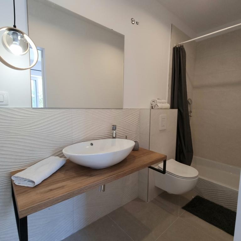Letošnje počitnice smo preživeli tukaj z mojo družino. Ne bi mogli izbrati bolje. Apartma je bil prijeten, čist z vso potrebno opremo. Terasa je idealna za sprostitev, poslušanje valov in opazovanje čudovitih sončnih zahodov. Dostop do plaže je skozi čudovit vrt, kjer lahko shranite napihljive igrače v vodi, tako da jih ni treba vsak dan nositi v apartma. Lastnica, njen mož in njena mama so zelo prijazni, ustrežljivi in prijetni. Apartmajska hiša se nahaja nekaj korakov od čudovite prodnate plaže. Morje je popolno in polno rib. Nobeden od naju se ni hotel vrniti domov in upamo, da se bomo naslednje leto vrnili.