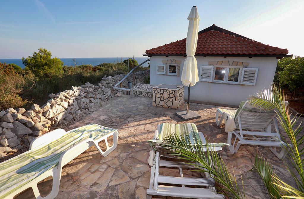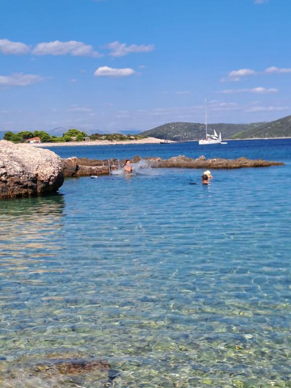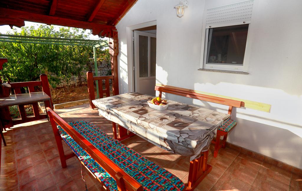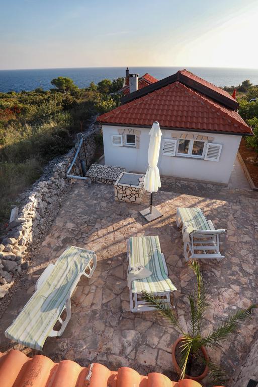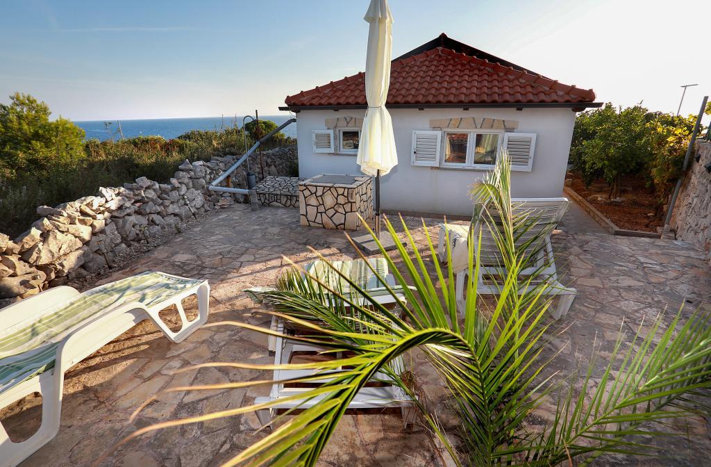 O mestu: Počitniška hiša Veronika je idealen kraj za robinzonski oddih na otoku Drvenik Mali v srednji Dalmaciji, blizu mesta Trogir, ki je pod Unescovo zaščito. Otok ima eno najlepših peščenih plaž, Vela Rina, v stilu Modre lagune. Nahajamo se v neokrnjeni naravi, nad peščeno plažo zaliva in rta Kalafate, zato ima naše posestvo spektakularen pogled na odprto morje; božansko ob zori in sončnem zahodu. Prostor: Naša nepremičnina je enonadstropna hiša, popolnoma opremljena in klimatizirana, z dvoriščem, v katerem je sončna terasa s čudovitim pogledom na morje. Ostale opombe: V sklopu nepremičnine sta dve ločeni hiši, Veronika in Šimun, ki ju je možno najeti posamezno ali skupaj, vendar imajo gostje zasebnost zaradi lokacije vsake hiše. Obe enoti si delita ograjeno, skupno parkirišče in prostorno gostilno - žar.