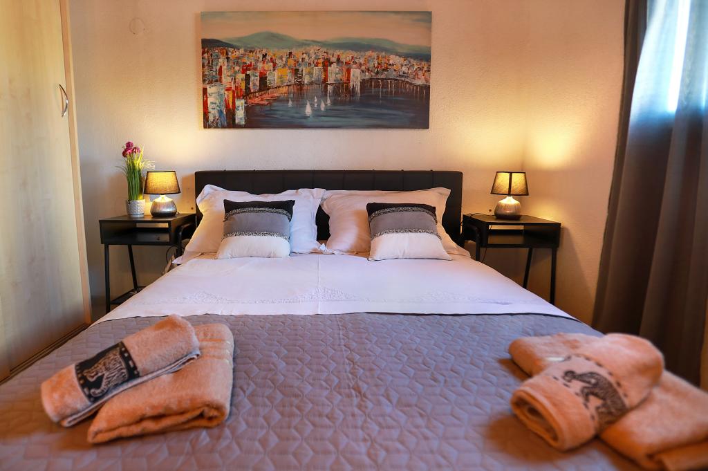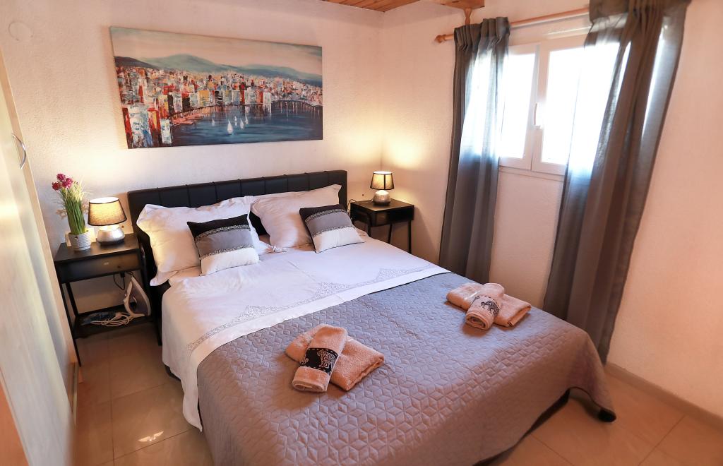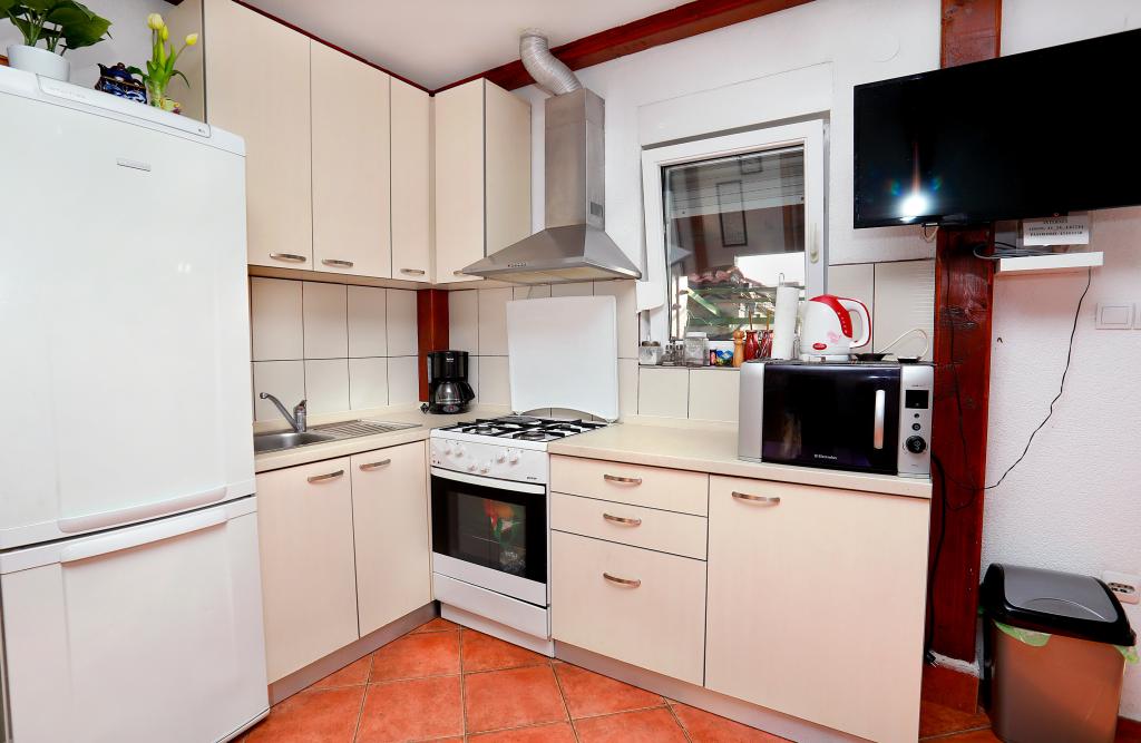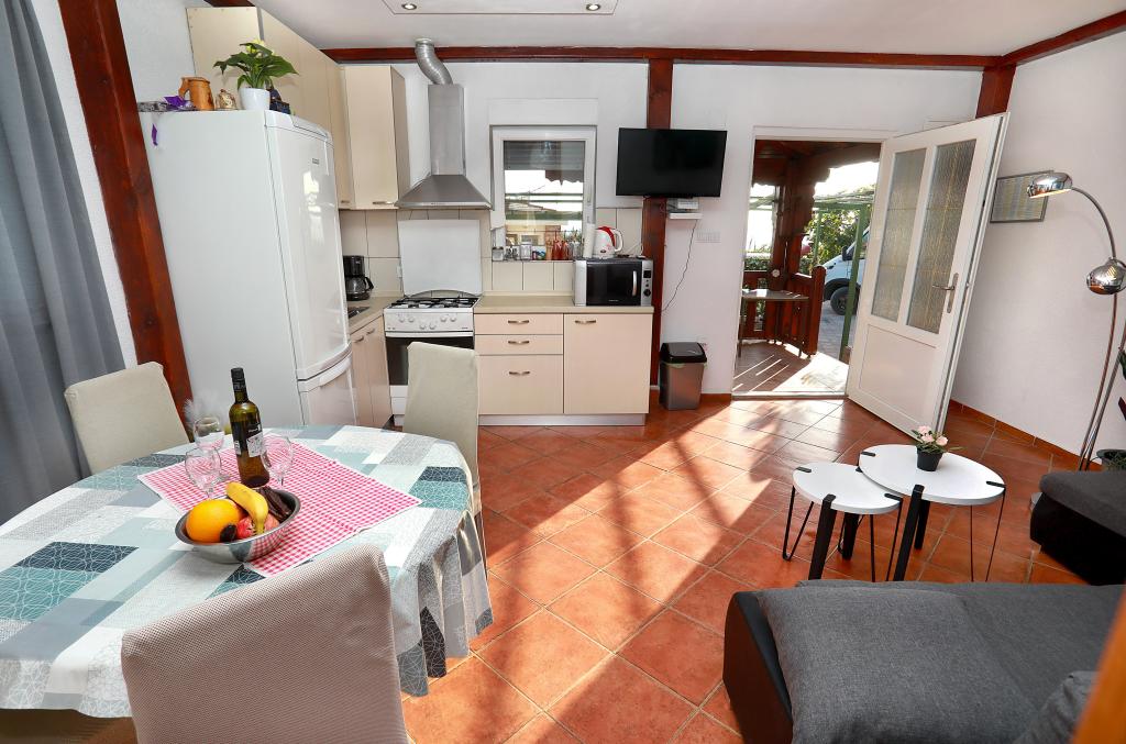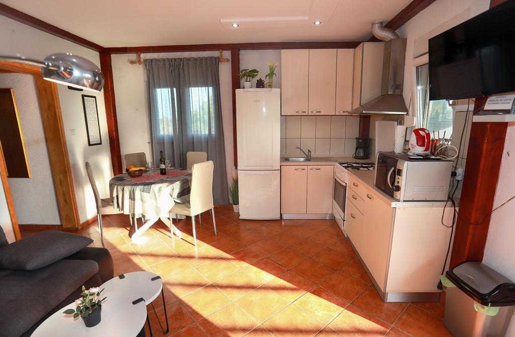 O mestu: Počitniška hiša Veronika je idealen kraj za robinzonski oddih na otoku Drvenik Mali v srednji Dalmaciji, blizu mesta Trogir, ki je pod Unescovo zaščito. Otok ima eno najlepših peščenih plaž, Vela Rina, v stilu Modre lagune. Nahajamo se v neokrnjeni naravi, nad peščeno plažo zaliva in rta Kalafate, zato ima naše posestvo spektakularen pogled na odprto morje; božansko ob zori in sončnem zahodu. Prostor: Naša nepremičnina je enonadstropna hiša, popolnoma opremljena in klimatizirana, z dvoriščem, v katerem je sončna terasa s čudovitim pogledom na morje. Ostale opombe: V sklopu nepremičnine sta dve ločeni hiši, Veronika in Šimun, ki ju je možno najeti posamezno ali skupaj, vendar imajo gostje zasebnost zaradi lokacije vsake hiše. Obe enoti si delita ograjeno, skupno parkirišče in prostorno gostilno - žar.